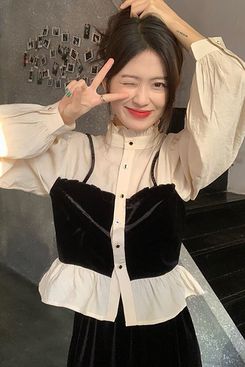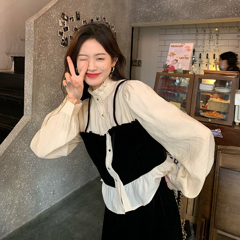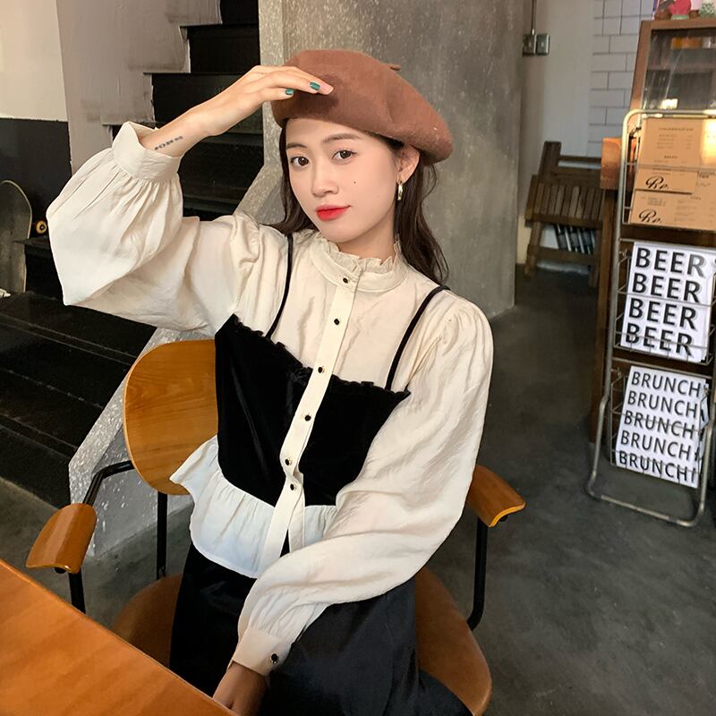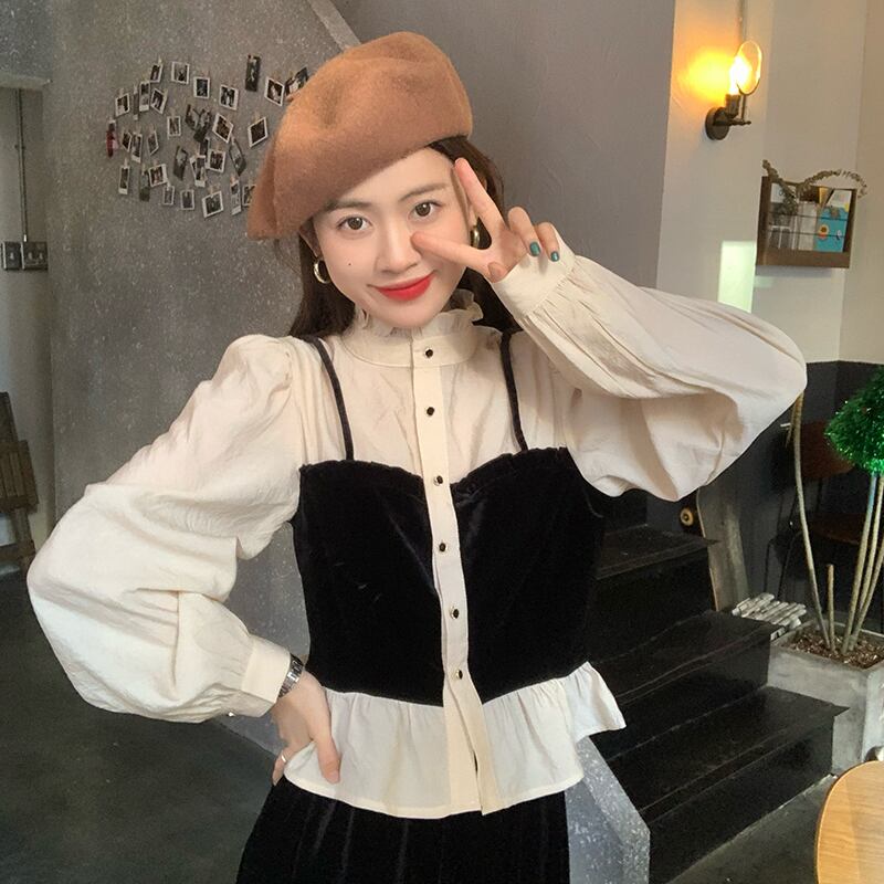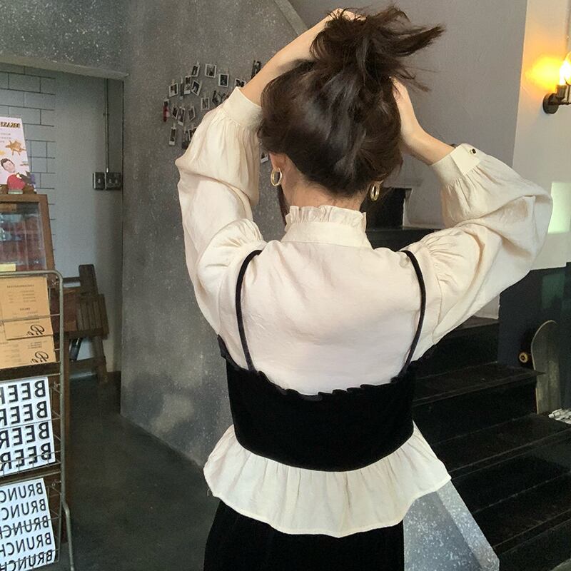 スタンドカラーシャツ トップス ブラウス クラシック アプリコット レギュラー丈 袖あり 長袖 スタンドカラー スリム 細身 タイト シングルブレスト ボタン ポリエステル フェイク2ピース 大人女子 大人 上品 おしゃれ きれいめ シンプル デイリーウェア エレガント レトロ レトロ風 こなれ感 ラフ キュート かわいい 女子 個性的 デザイン 主役級 存在感 無地 春 スプリング 秋 オータム 10代 20代 レディース 女性用 デート お出かけ 女子会 S M L