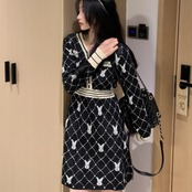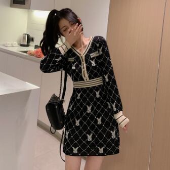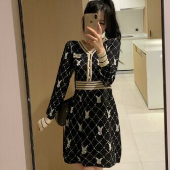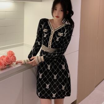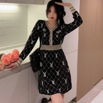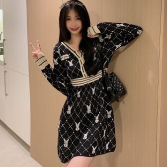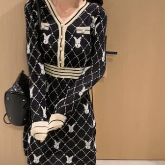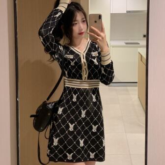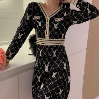 柄ニットミニ丈ワンピース ワンピース ニット ミニ丈 長袖 Vネック スリム Iライン 伸縮性 ニット かわいい 大人可愛い きれいめ 大人 上品 おしゃれ レトロ 大人可愛い ラブリー 柄 アニマル柄 キャラクター 秋 冬 誕生日 10代 20代 30代 レディース 女の子 学生 通学 デート お出かけ 休日 お散歩 特徴的 着回し ファッション コーデ スタイル 楽ちん モテ 個性的 お得 合わせやすい 好感度 目立つ M L XL 2XL 3XL 4XL 大きいサイズ サイズ豊富 黒 ブラック