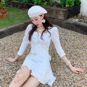 ホワイトカラーが爽やかなミニ丈ワンピースです。