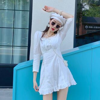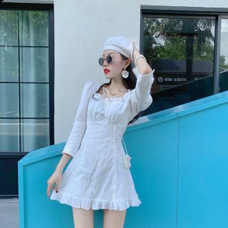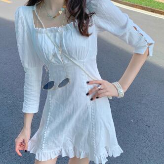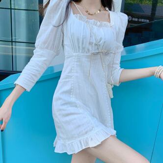 ホワイトミニ丈ワンピース ワンピース シャツ ブラウス ミニ丈 7分袖 スクエアネック Aライン フリル かわいい 大人可愛い きれいめ シンプル カジュアル 大人 上品 おしゃれ 大人可愛い 大人女子 ラブリー キュート ガーリー 個性的 存在感 無地 春 夏 10代 20代 30代 レディース 女性用 ママ 女の子 デート お出かけ 女子会 休日 イベント リゾート 旅行 海 ホテル ガーデン レストラン お散歩 人気 着回し ファッション コーデ スタイル モテ 美脚 お得 好感度 S M L