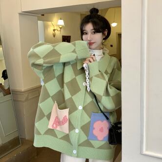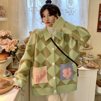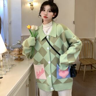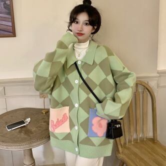 オーバーニットカーディガン トップス アウター ニット セーター カーディガン ロング 長袖 襟付き ボタン かわいい カジュアル レトロ ラブリー キュート ガーリー 個性的 存在感 柄 秋 冬 10代 20代 30代 レディース ママ 女の子 デート お出かけ 公園デビュー お泊まり 休日 高原 ガーデン お散歩 ほっこり リラックス 特徴的 部屋着 着回し 普段使い 重ね着 ファッション スタイル 楽ちん 暖かい 防寒 プレゼント 目立つ フリーサイズ 大きい 大きめ ゆったり 緑 グリーン