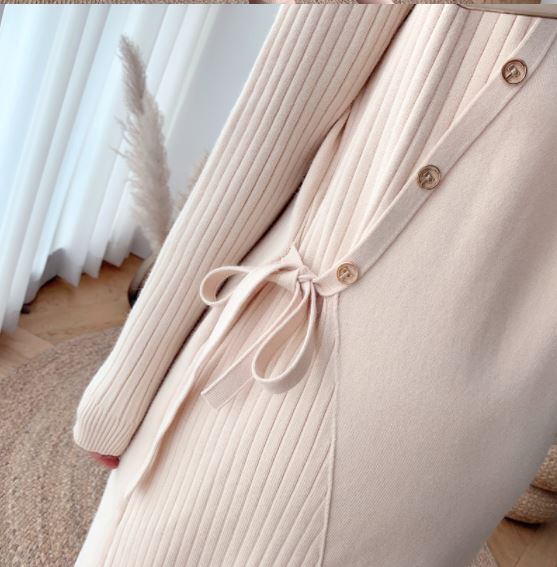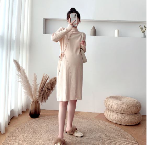 妊娠中は色々な面で不安や心配がありますが、このニットドレスがあれば、おしゃれで気持ちも上がります。日々のワードローブに加えて、ぜひ一着持っておいていただきたいです。