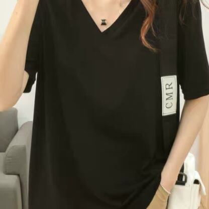 ルーズフィットVネックTシャツ トップス ミディアム丈 袖あり 半袖 Vネック イージー 綿 薄手 大人可愛い きれいめ シンプル 大人 上品 おしゃれ お洒落 かっこいい 大人女子 こなれ感 ラフ ラブリー キュート ルーズ 個性的 クール モード系 エレガント モダン 主役級 存在感 とろみ感 無地 夏 10代 20代 30代 レディース オフィス OL 通勤 学生 通学 デート お出かけ 休日 リゾート 旅行 着回し 普段使い ファッション コーデ スタイル 楽ちん モテ 定番 トレンド お得