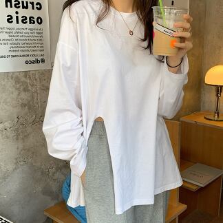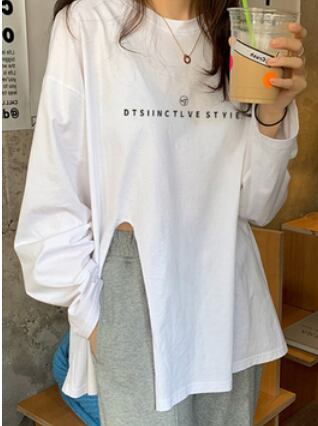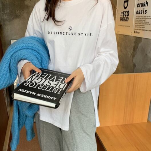 ロゴ入りカジュアル長袖Tシャツ トップス シャツ カットソー ロング丈 長袖 ラウンドネック サイドスリット かわいい きれいめ シンプル カジュアル おしゃれ かっこいい 大人女子 こなれ感 ラフ メンズライク マニッシュ ボーイッシュ スポーティー ルーズ 無地 春 秋 10代 20代 30代 40代 レディース メンズ ペア ママ 女の子 男の子 学生 通学 デート お出かけ 公園デビュー 女子会 お泊まり 休日 ジム ヨガ アウトドア リゾート 旅行 海 プール 高原 お散歩 着回し 普段使い