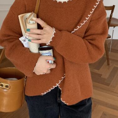 このセーターは、ブラウンとアイボリーのシンプルなカラーリングが特徴。スリムで細身のシルエットが、身体のラインを美しく引き立て、上品でかわいらしい印象を与えます。春、秋、冬と着用でき、様々なシーンで活躍してくれます。