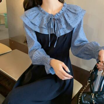 モード系からガーリー系まで、様々なスタイルに合わせられるロングワンピースをご紹介します。清涼感あふれるブルーの色が美しい、上品でシンプルなデザインです。ストレートなシルエットが細見え効果を発揮し、スマートな印象を与えます。