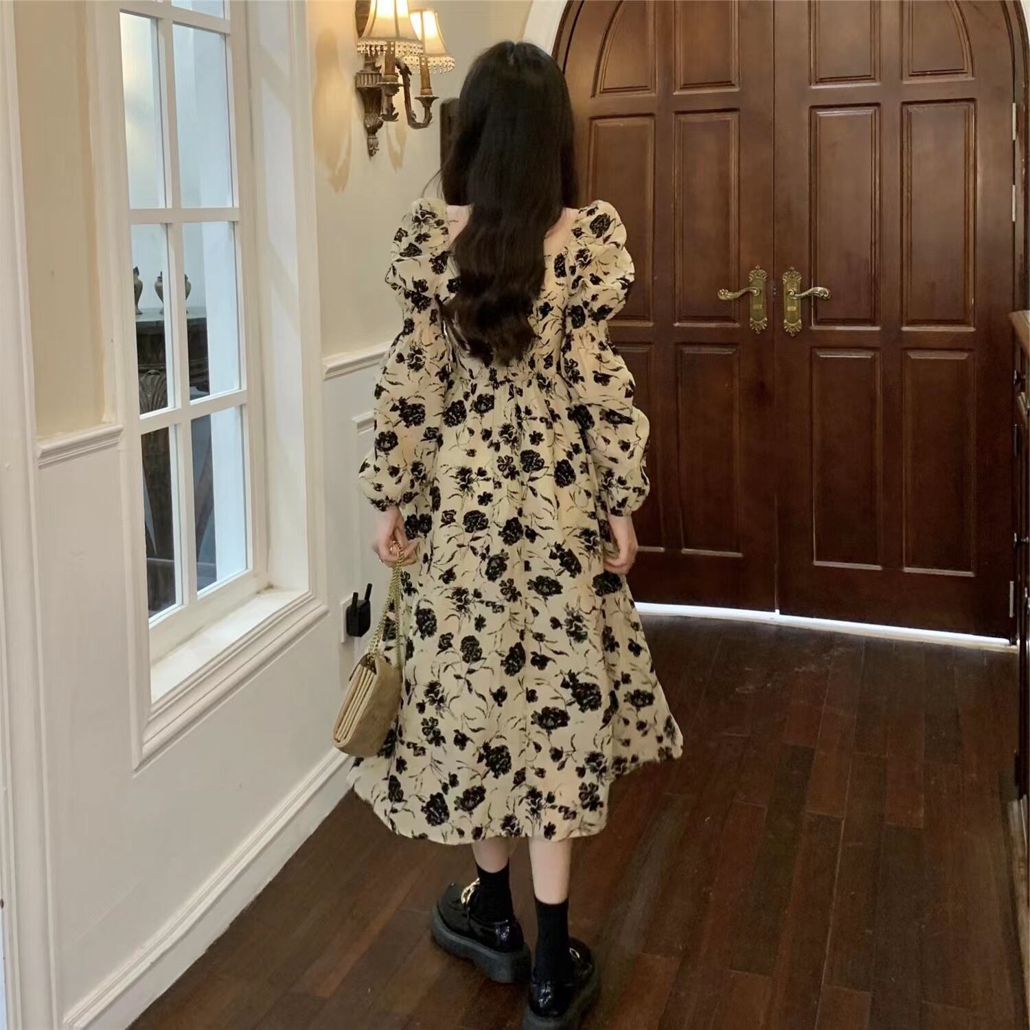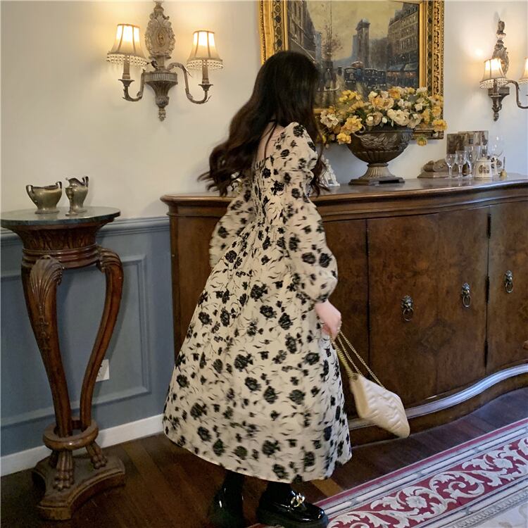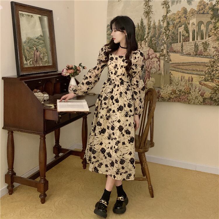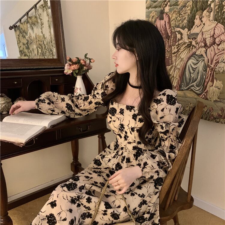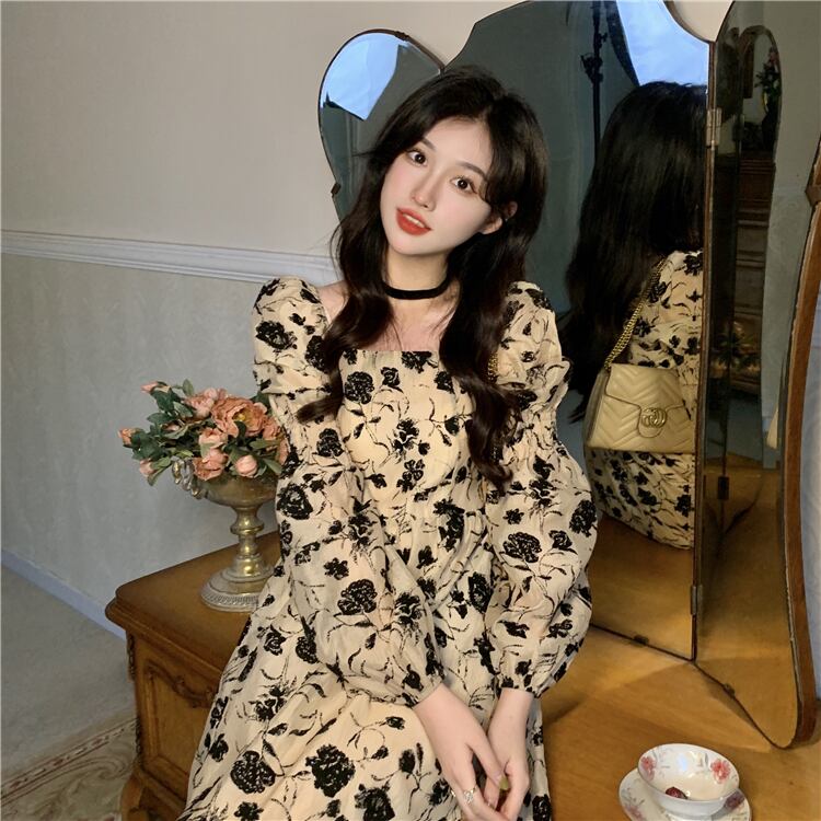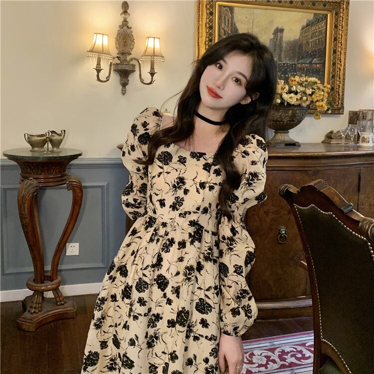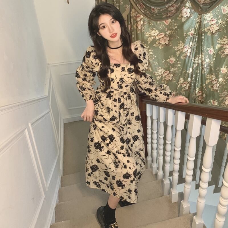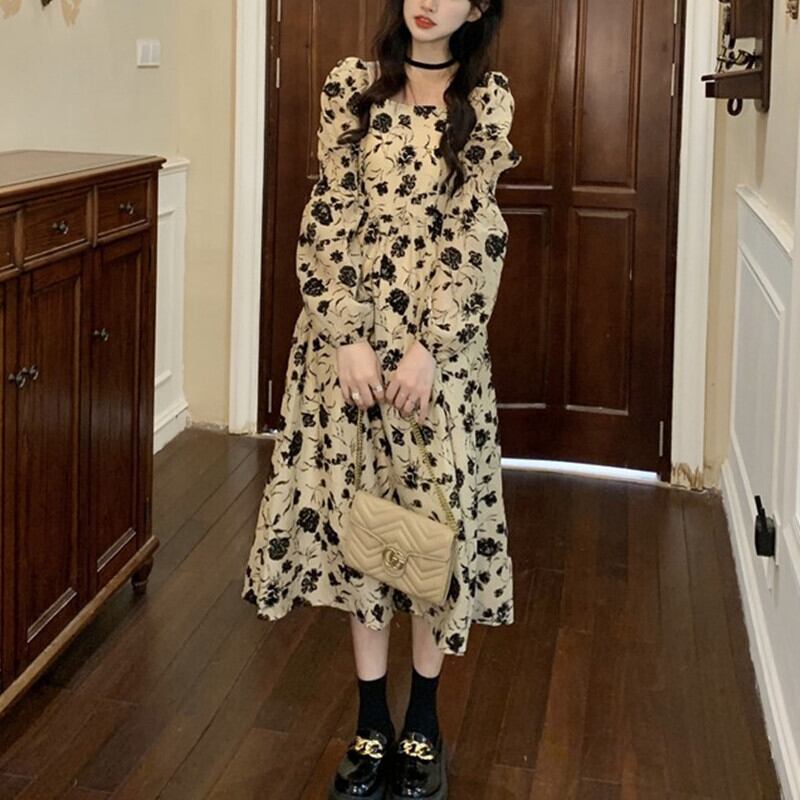 フローラルプリント 配色フラワー柄 ジュリエットスリーブ 前後スクエアネック デコルテ魅せ ワンピース 膝下 ミモレ丈 ミディアム丈 長袖 ボリューム袖 パフスリーブ フレア Aライン ハイウエスト 大人可愛い きれいめ シンプル カジュアル 上品 おしゃれ エレガント 大人女子 花柄 春 秋 冬 抜け感 レディース 女性用 ママ フェミニン クラシカル デート お出かけ イベント 女子会 着回し 普段使い 韓国系 オルチャン コーデ スタイル M L XL 2XL 3XL 4XL ベージュ