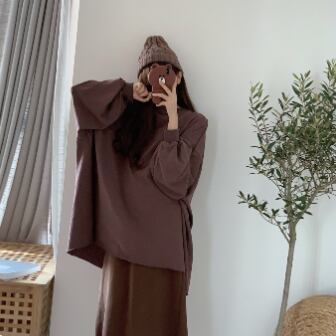 商品名にもなっているオーバートレーナーは、今季の注目アイテムです。シンプルながらも独特なデザイン性で、大人の女性から学生さんまで、幅広い層に愛されています。着丈が長めで腰まわりをカバーしてくれるので、体型カバーにも最適。スリムなシルエットだから、細身効果も期待できます。色はブラックとブラウンの2色展開で、コーディネートの幅も広がります。デートから通学まで、あらゆるシーンで活躍してくれる、おしゃれなプルオーバーです。