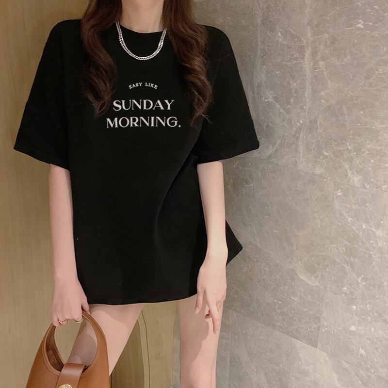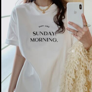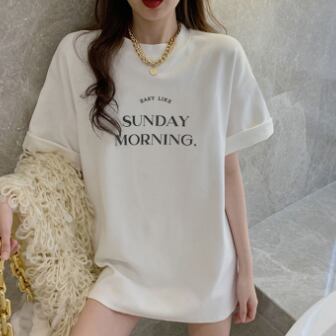 ロング丈の半袖Tシャツです。