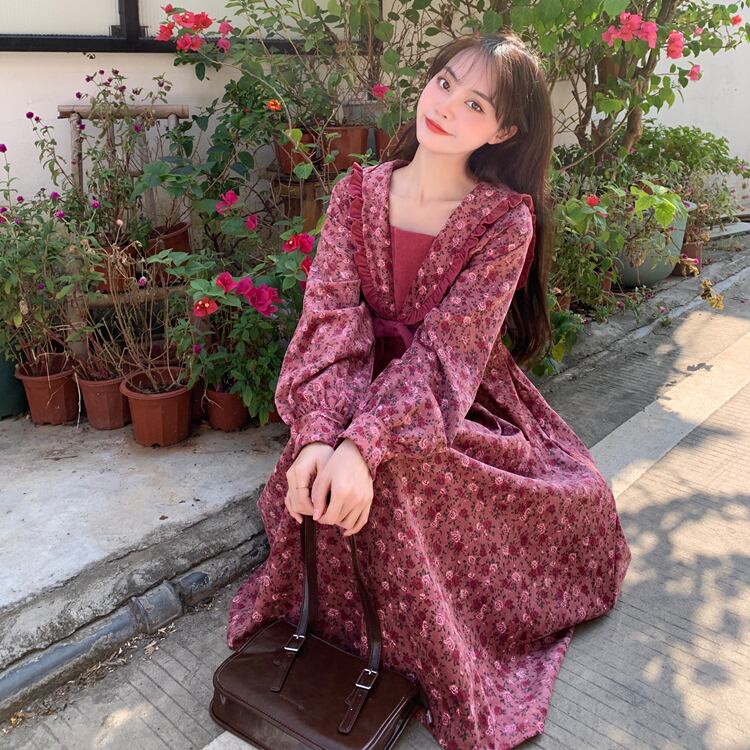 花柄ワンピース レッド ワンピース ロング スリム 細身 ストレート スマート かわいい きれいめ シンプル 大人 上品 おしゃれ 大人可愛い 大人女子 こなれ感 ラフ クール モード系 セクシー エレガント 無地 春 秋 冬 誕生日 謝恩会 二次会 ハロウィン クリスマス バレンタイン レディース 女性用 学生 通学 デート お出かけ 女子会 お泊まり 休日 アウトドア パーティー イベント リゾート 旅行 ホテル レストラン 着回し 普段使い 韓国 韓国系 オルチャン ファッション コーデ スタイル