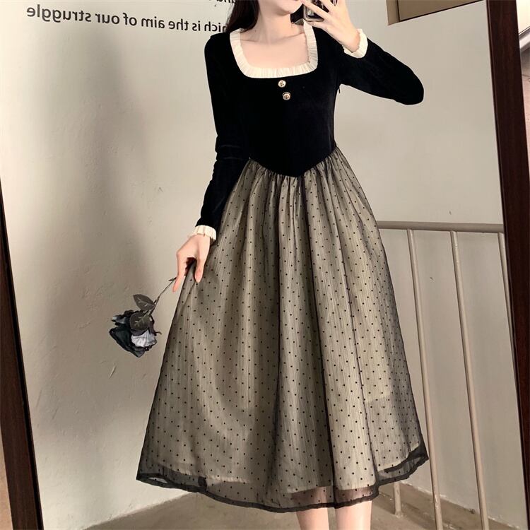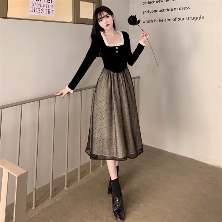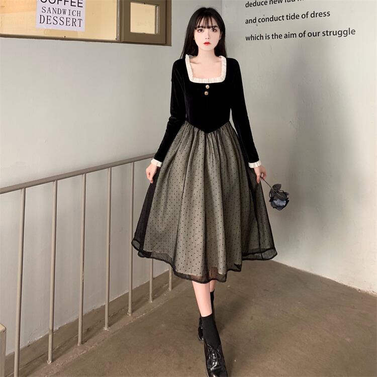 ドット柄ワンピース ブラック ワンピース ミモレ丈 スリム 細身 ストレート スマート かわいい きれいめ シンプル 大人 上品 おしゃれ 大人可愛い 大人女子 こなれ感 ラフ クール モード系 セクシー エレガント 無地 春 秋 冬 誕生日 謝恩会 二次会 ハロウィン クリスマス バレンタイン レディース 女性用 学生 通学 デート お出かけ 女子会 お泊まり 休日 アウトドア パーティー イベント リゾート 旅行 ホテル レストラン 着回し 普段使い 韓国 韓国系 オルチャン ファッション コーデ