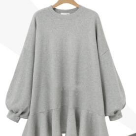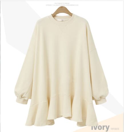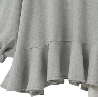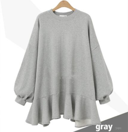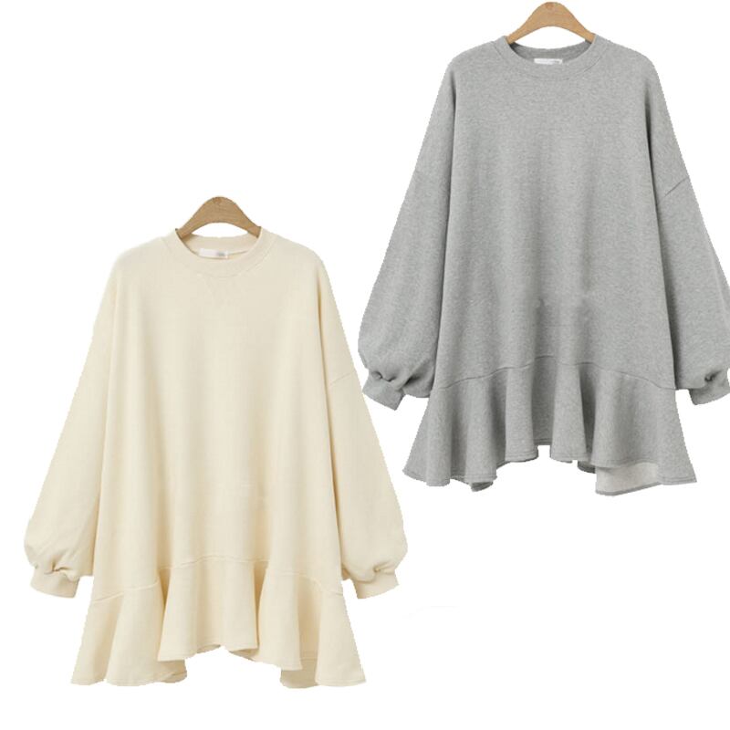 プルオーバー トップス シンプル ブラック 黒 グレー 灰色 アプリコット ミディアム丈 袖あり 長袖 ラウンドネック フレア フリル 綿 コットン 大人女子 大人 上品 おしゃれ きれいめ シンプル デイリーウェア レトロ レトロ風 こなれ感 ラフ ルーズ シルエット キュート かわいい 女子 個性的 デザイン 主役級 存在感 無地 春 スプリング 10代 20代 レディース 女性用 着回し 普段使い 3XL 4XL 大きいサイズ プラスサイズ M L XL 2XL