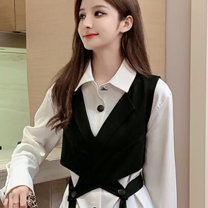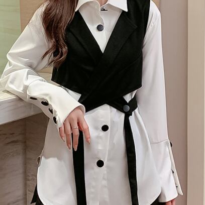トップス シャツ ベスト 白シャツ 長袖 2点セット ツーピース お得 かわいい 大人可愛い おしゃれ お洒落 大人可愛い 大人女子 こなれ感 キュート ガーリー 個性的 主役級 存在感 無地 春 秋 10代 20代 30代 レディース 女性用 デート お出かけ 女子会 お泊まり 休日 着回し 重ね着 韓国 韓国系 ファッション コーデ スタイル 楽ちん モテ 新作 定番 送料無料 トレンド 流行 インポート 海外 人気 大人カジュアル レイヤード デートコーデ 合わせやすい コスパ ゆったり ゆる