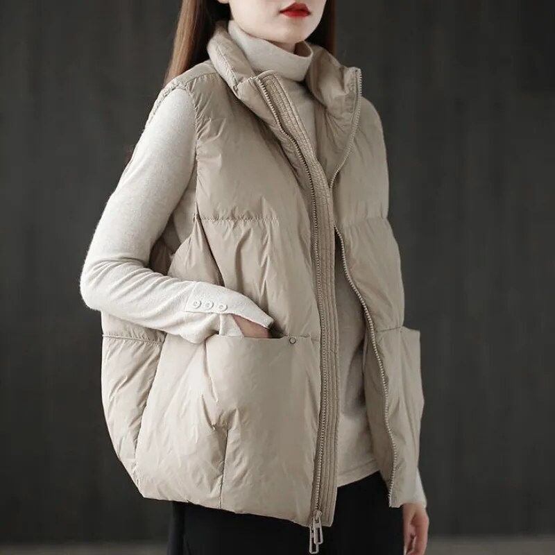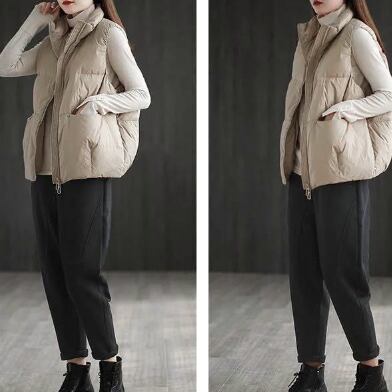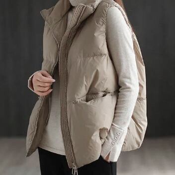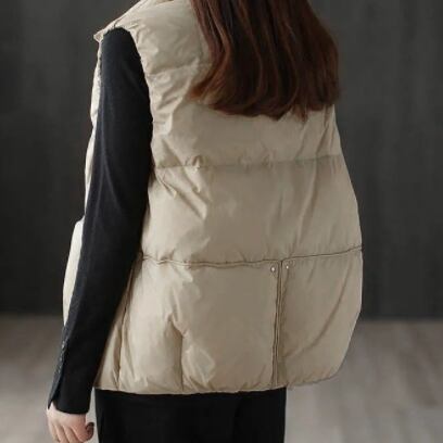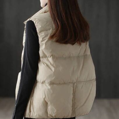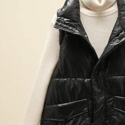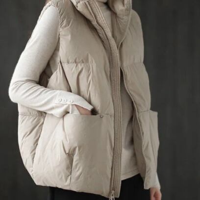 当店のダウン風ベストは高品質な素材を使用しており、フワッと広がる軽い着心地が魅力。温かみのある素材で、寒い季節でも暖かさをキープしてくれます。女性らしい細身のシルエットで、スタイルUP効果も期待できますよ。