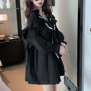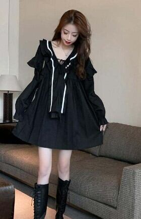 映画『オズの魔法使い』に出てきそうなゴシック風ミニワンピースが登場しました。Vネックとパフスリーブ、レースのデザインで、大人可愛い雰囲気が漂います。Aラインのフレアシルエットが女性らしさを引き立て、脚長効果も抜群です。