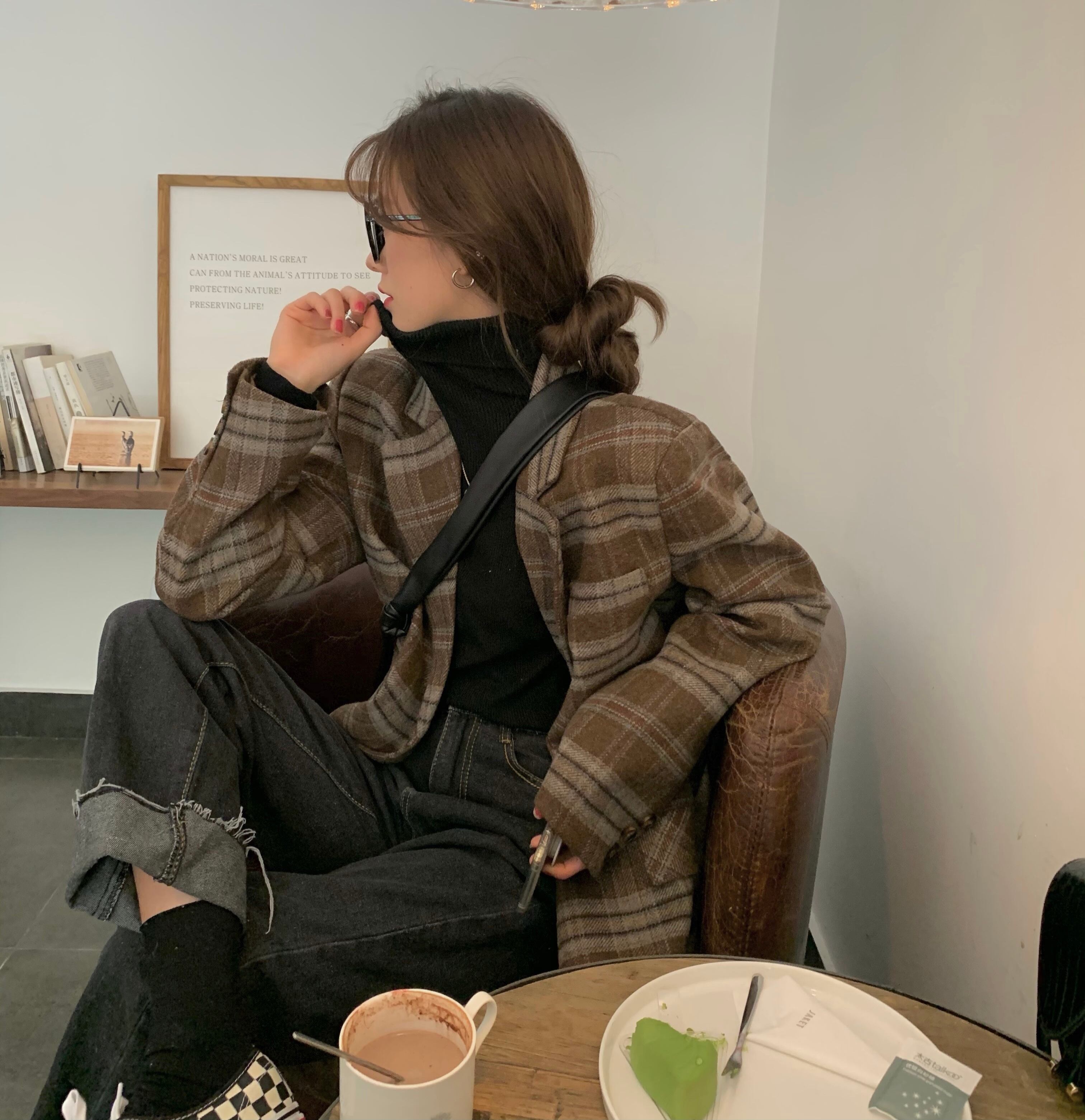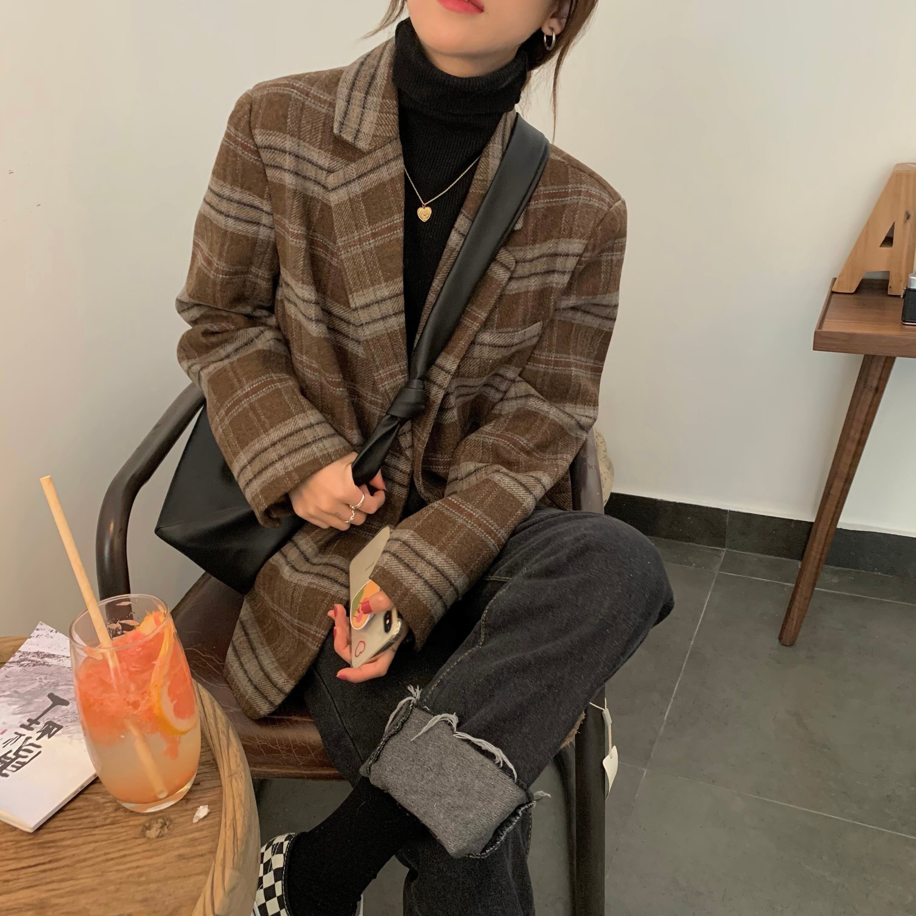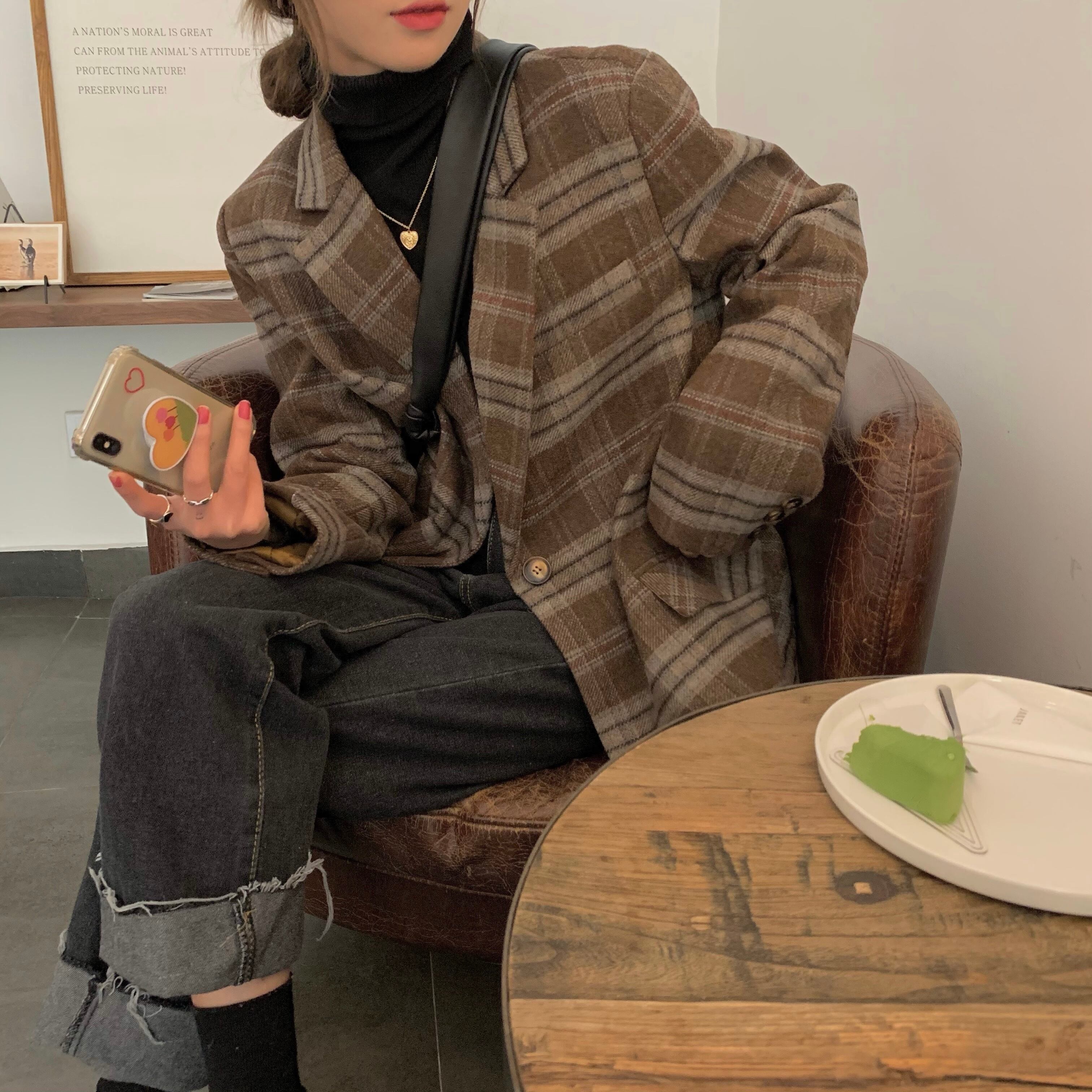 今年トレンドのチェック柄ウールジャケット。
