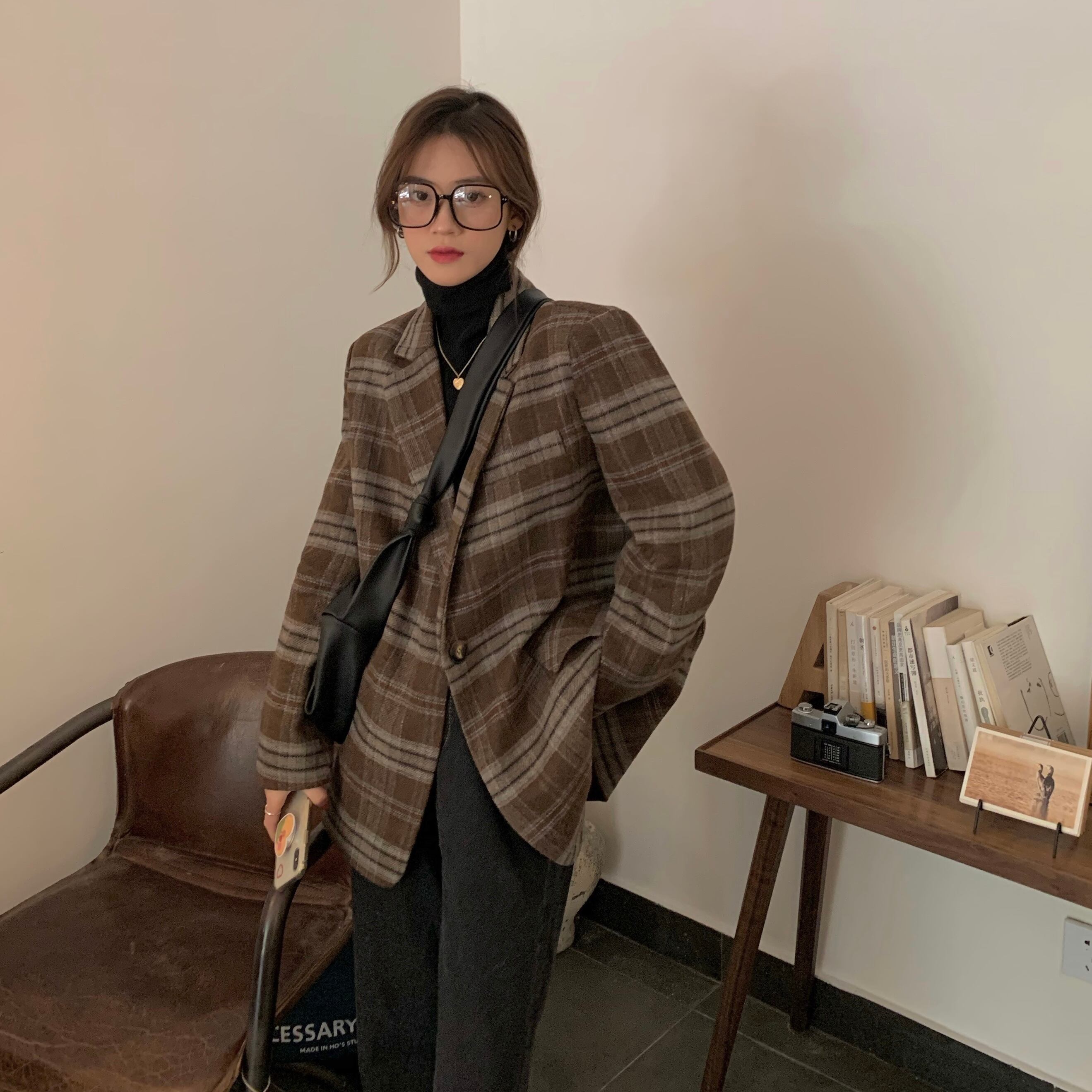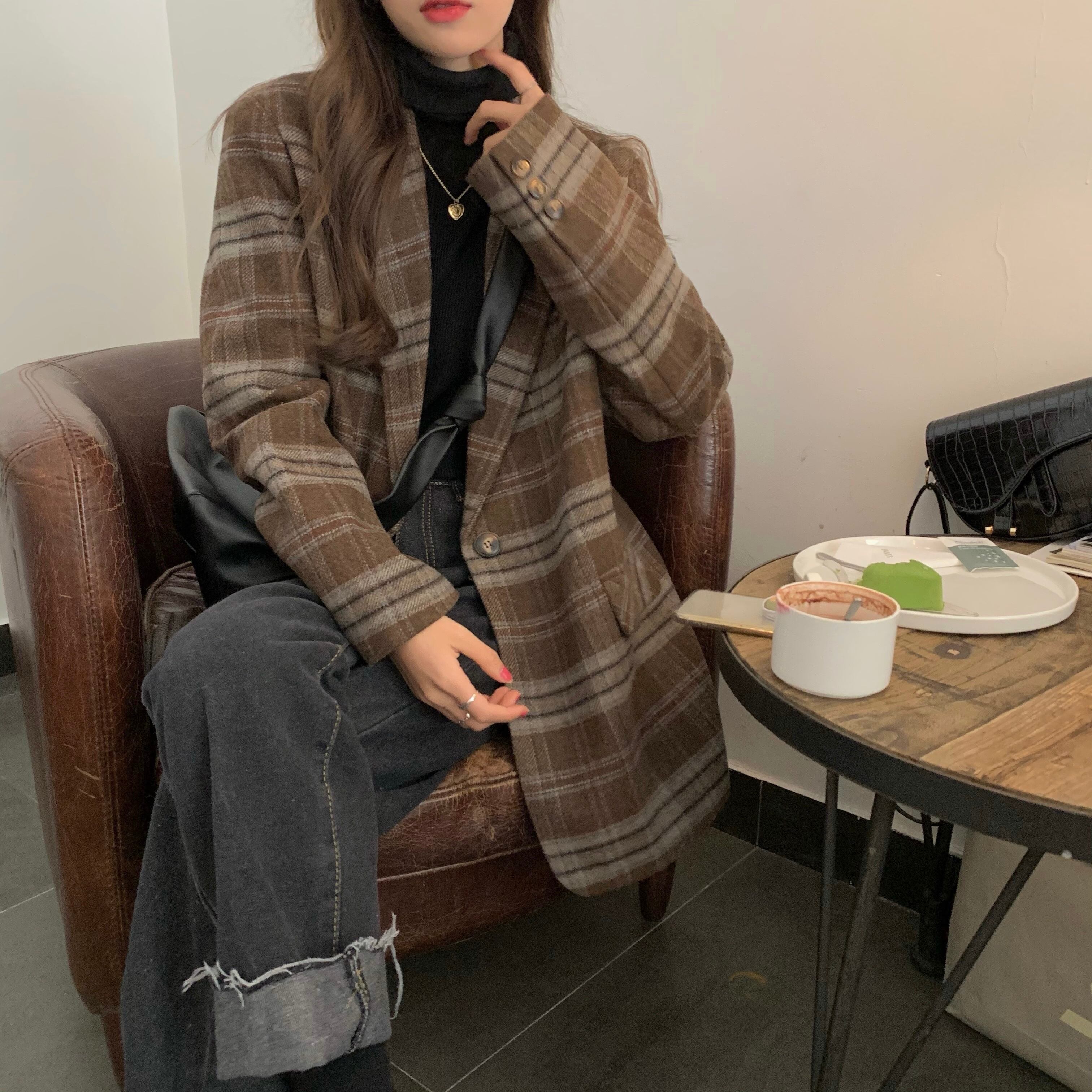 ウールコート アウター コート ジャケット 茶色 ブラウン ミディアム丈 長袖 ストレート ポケット 前開き ボタン ウール 厚手 かわいい 大人 おしゃれ お洒落 レトロ 大人可愛い 大人女子 こなれ感 ラフ メンズライク ルーズ 個性的 主役級 存在感 抜け感 チェック柄 春 秋 2022 10代 20代 30代 レディース 通勤 通学 デート お出かけ 女子会 休日 旅行 ガーデン 着回し 普段使い ファッション コーデ スタイル 暖かい 新作 トレンド 流行 フリーサイズ ゆったり 大人カラー