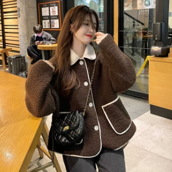 アウター ブルゾン ジャケット 上着 もこもこアウター ボアブルゾン 長袖 襟付き もこもこ モコモコ 前開き かわいい 大人可愛い カジュアル おしゃれ お洒落 レトロ 大人可愛い 大人女子 こなれ感 ラフ メンズライク ボーイッシュ キュート ガーリー 個性的 主役級 存在感 パイピング バイカラー 秋 冬 10代 20代 30代 レディース 女性用 ママ 女の子 学生 デート お出かけ 公園デビュー 女子会 お泊まり 休日 韓国 韓国系 ファッション コーデ スタイル 暖かい 防寒 モテ 新作 定番
