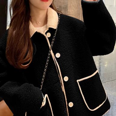 バイカラーのパイピングデザインがお洒落なボアジャケットです。