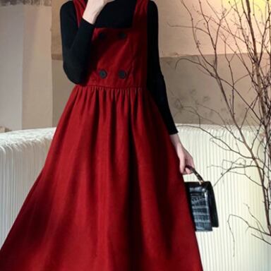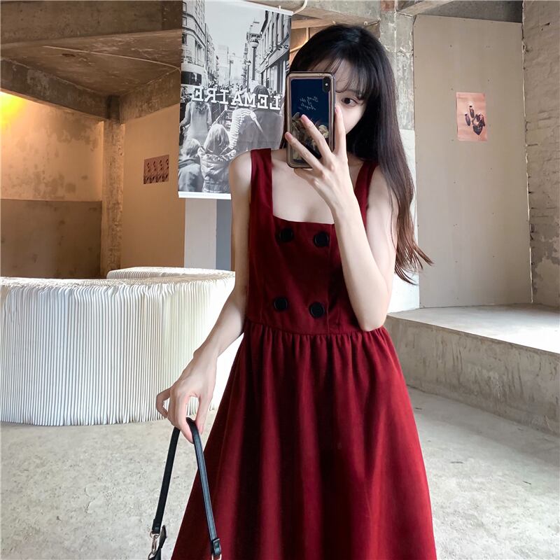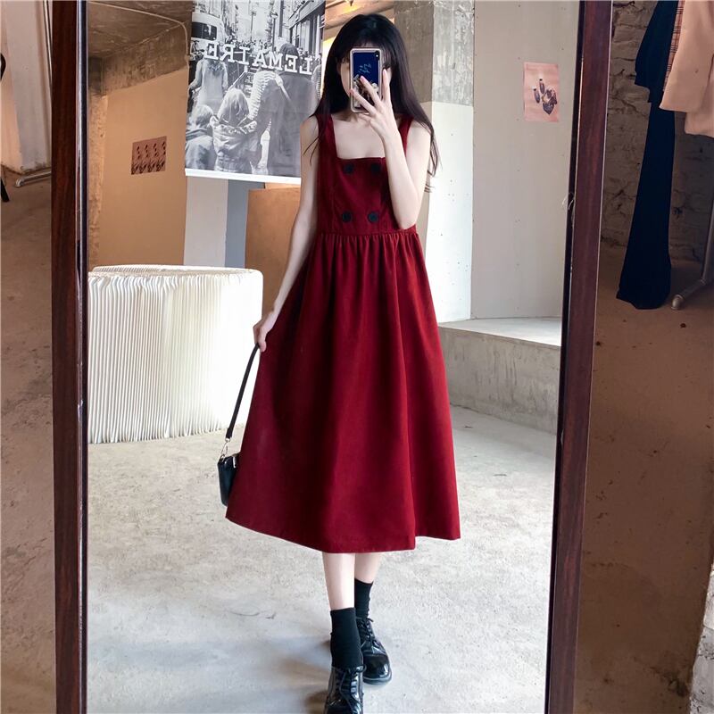 ワンピース 膝下 ミモレ ミモレ丈 袖なし ノースリーブ スクエアネック かわいい 大人可愛い カジュアル おしゃれ お洒落 レトロ 大人可愛い 大人女子 ラブリー キュート ガーリー 個性的 主役級 存在感 春 秋 冬 10代 20代 30代 レディース 女性用 ママ マタニティ 女の子 着回し 普段使い 重ね着 韓国 韓国系 オルチャン ファッション コーデ スタイル 楽ちん モテ 送料無料 トレンド 流行 インポート 海外 人気 大人カジュアル レイヤード ヴィンテージ 赤 大人カジュアル コスパ