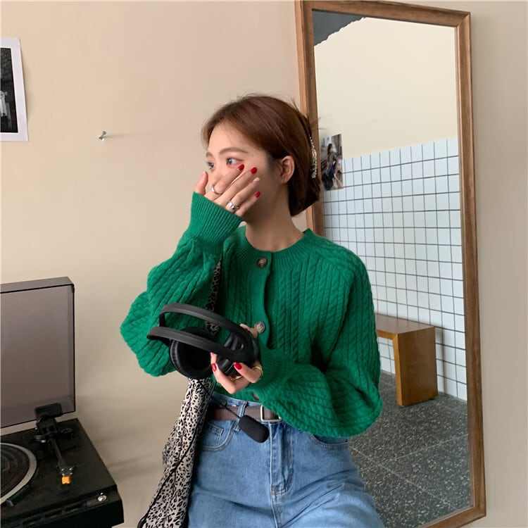 カーディガン トップス セーター ジャケット 緑 グリーン ショート丈 リブ袖 ラウンドネック ストレート ふわふわ 前開き ボタン ウール あったか素材 かわいい 大人可愛い きれいめ シンプル カジュアル 大人 上品 おしゃれ レトロ 大人女子 こなれ感 ラフ ガーリー ルーズ 個性的 無地 秋 冬 2021 10代 20代 30代 レディース ママ 通勤 通学 デート お出かけ 女子会 休日 着回し 普段使い 重ね着 お揃い ファッション コーデ スタイル 楽ちん 暖かい 定番 フリーサイズ