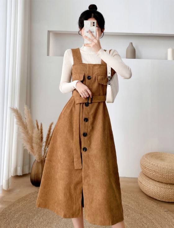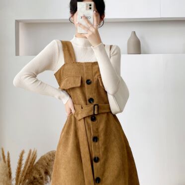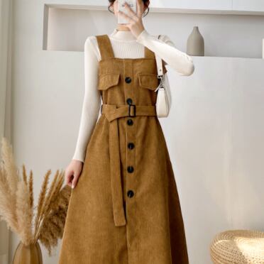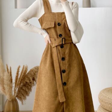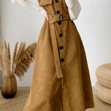 コーデュロイストラップツーピース スカート ボトムス ロング Aライン スリット ポケット ハイウエスト 前開き ボタン コーデュロイ ツーピース かわいい 大人可愛い きれいめ シンプル カジュアル 大人 おしゃれ レトロ 大人女子 こなれ感 ラフ ラブリー キュート ガーリー 個性的 モード系 モダン 主役級 存在感 無地 春 秋 冬 10代 20代 30代 レディース 女性用 ママ OL 通勤 学生 通学 デート お出かけ 公園デビュー 女子会 休日 リゾート 旅行 ガーデン 着回し ファッション