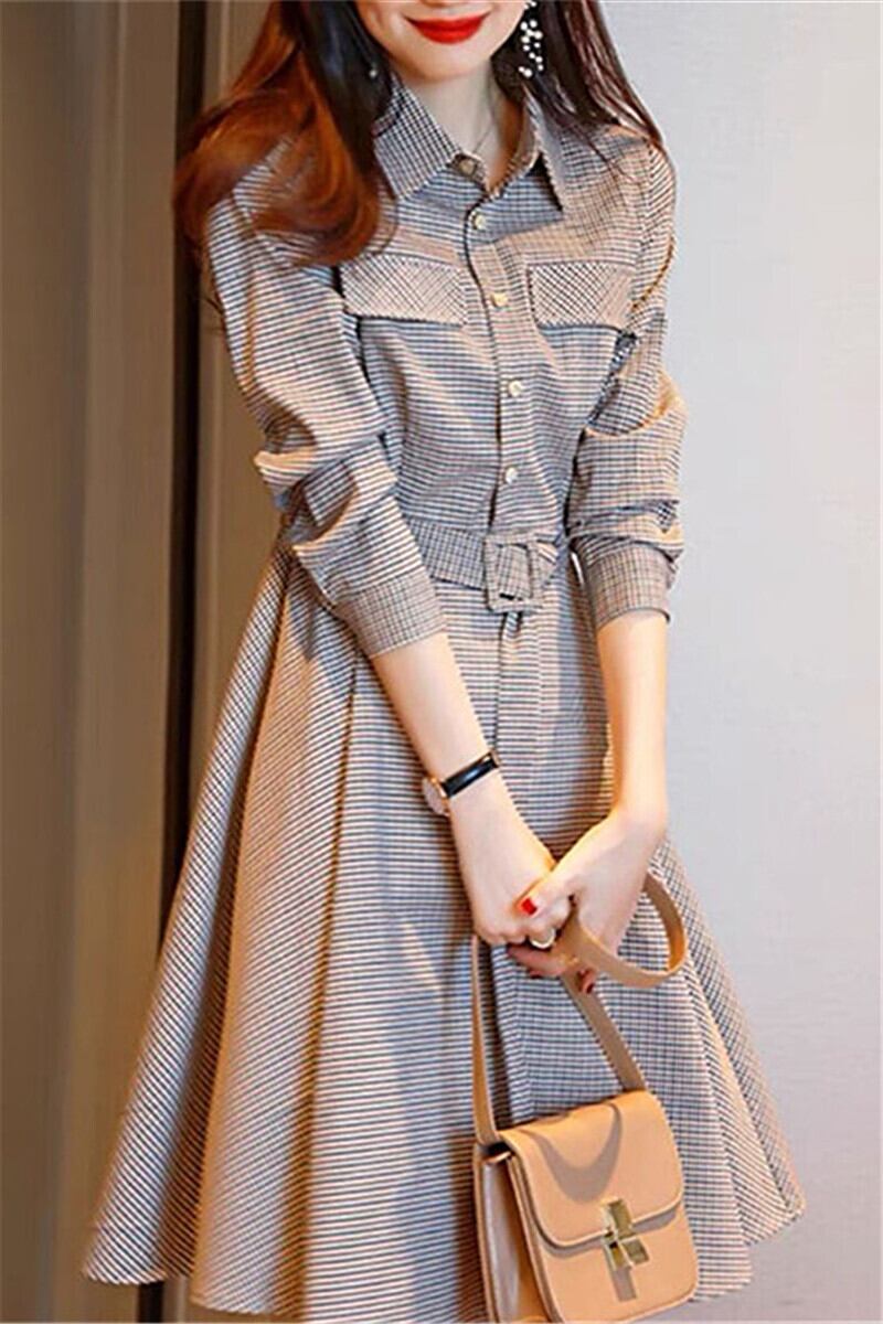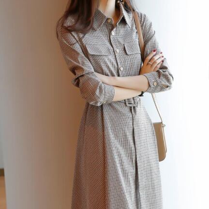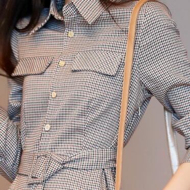 格子柄が大人可愛いワンピースは、シャツタイプで襟付き。前後差のあるAラインシルエットでスタイルアップ効果もバツグンです。程よく細身なので、オフィスやデートなどの場面に活躍すること間違いなし!袖は長めのパフスリーブで女性らしい雰囲気を演出しています。ポロカラーのネックラインもこだわりの1つ。ベルトも付属しているので、お好みのスタイルにリメイク可能です。