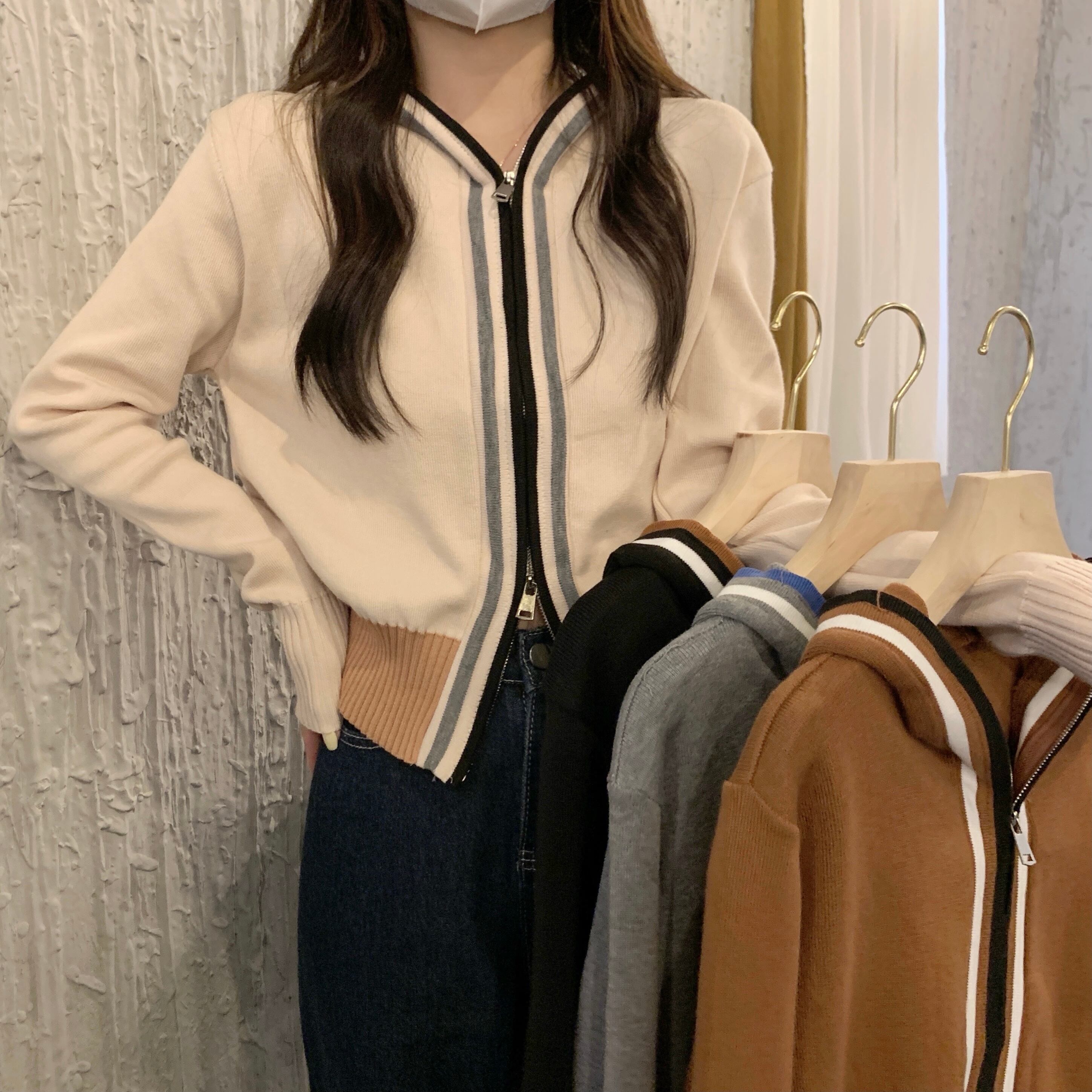 ジップアップニットカーディガン トップス カーディガン ショート丈 袖あり 長袖 Vネック スリム タイト 細身 ファスナー ハイウエスト リブ 前開き ニット かわいい 大人可愛い カジュアル おしゃれ お洒落 かっこいい 大人女子 こなれ感 ラフ ラブリー キュート 個性的 モード系 モダン 主役級 存在感 無地 春 秋 冬 10代 20代 30代 レディース 女性用 OL 通勤 学生 通学 デート お出かけ 公園デビュー 休日 リゾート 旅行 着回し 普段使い ファッション コーデ スタイル モテ