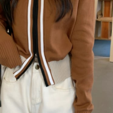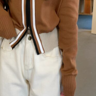温かみのあるニット素材が魅力のジップアップニットカーディガン。ショート丈で、高いハイウエストのボトムスとの相性抜群です。Vネックデザインが女性らしい印象を与え、リブが施された袖口と裾は縮みにくく、長持ちするのも嬉しいポイント。また、フロントのファスナーがポイントで、前を開けて羽織ったり、ファスナーを閉めてもOK。デザイン性もバッチリなアイテムです。春から冬まで、季節を問わず使え、カジュアルからオフィススタイルまで、着回し力も抜群です。