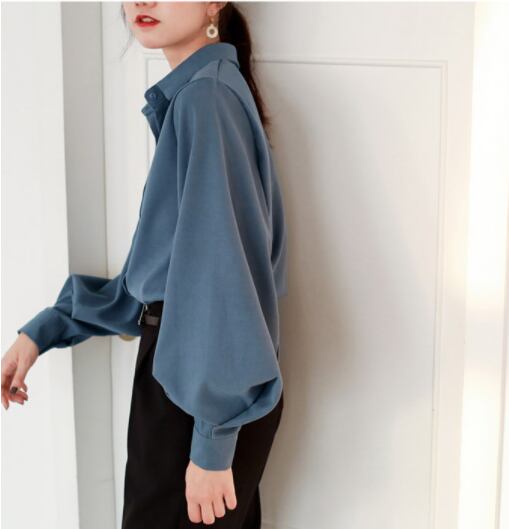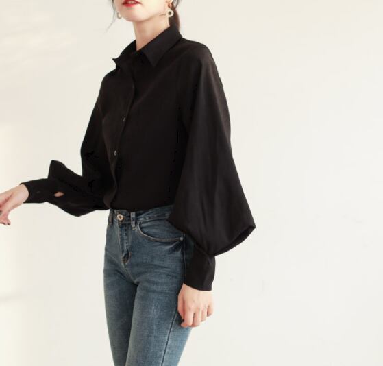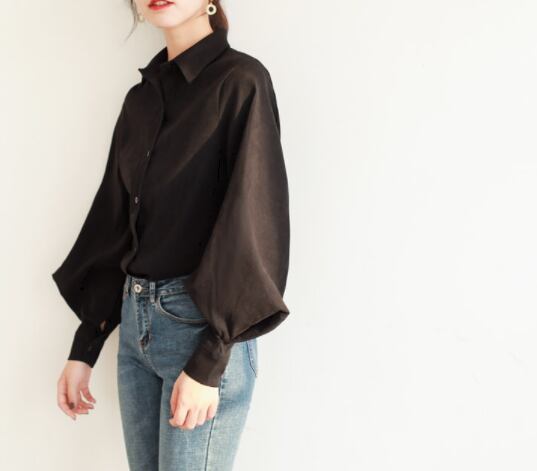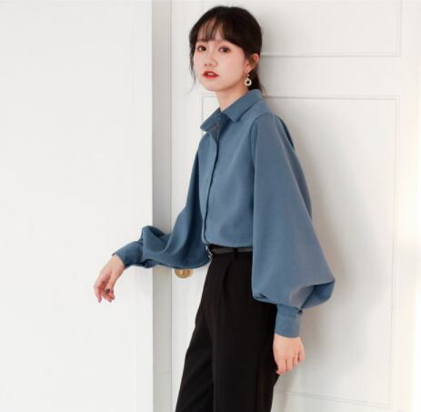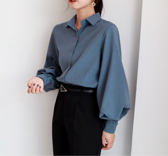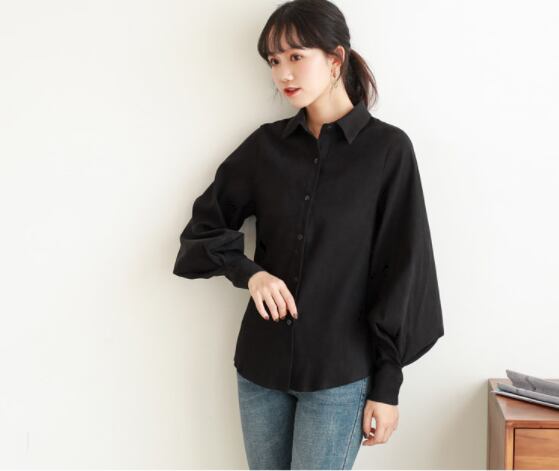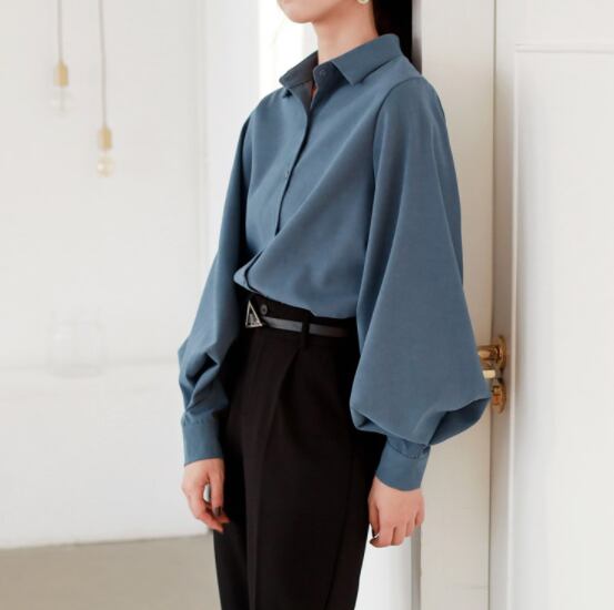 ボリューム袖シャツ トップス シャツ ブラウス シンプル モダン ブラック 黒 ホワイト 白 ブルー 青 レギュラー丈 袖あり 長袖 ボリューム袖 ランタンスリーブ 襟付き ストレート シングルブレスト ボタン 大人女子 大人 上品 おしゃれ かっこいい クール きれいめ シンプル エレガント こなれ感 ラフ ルーズ シルエット 主役級 存在感 無地 秋 冬 20代 30代 40代 レディース 女性用 通勤 学生 通学 着回し 普段使い ファッション コーデ S M L XL