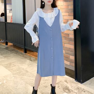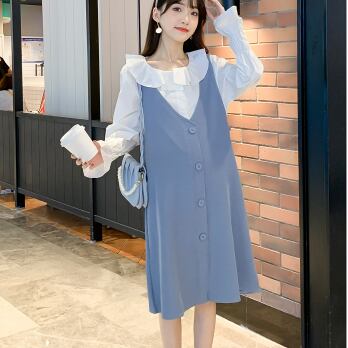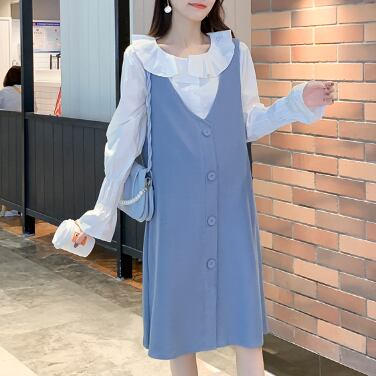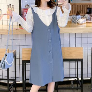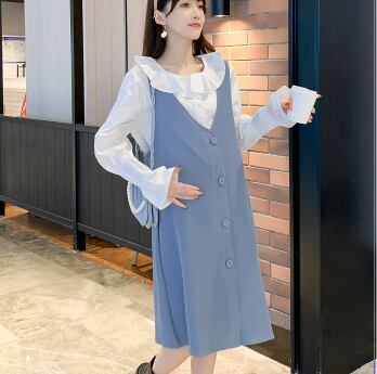 マタニティワンピースブラウスとジャンバースカートのセットです。