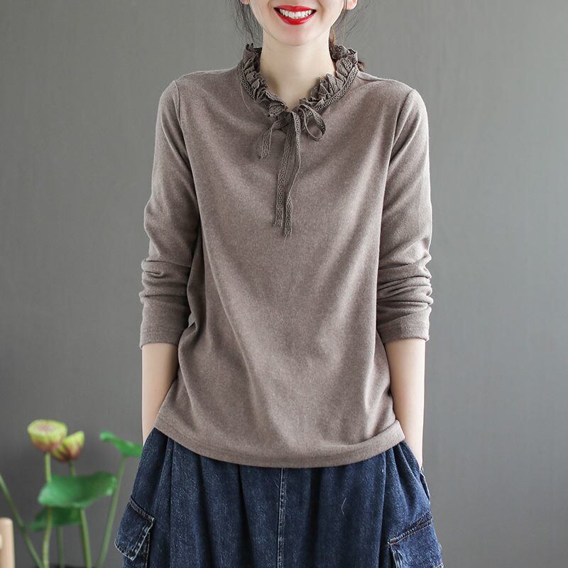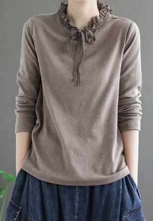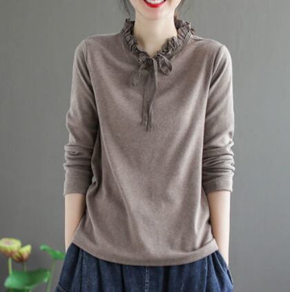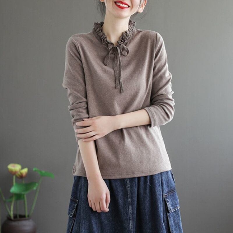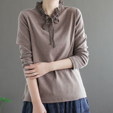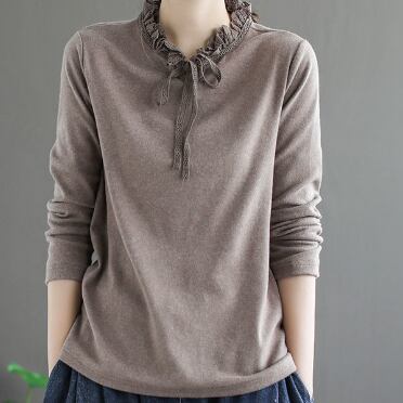 フリル&リボン長袖トップス トップス シャツ カットソー 長袖 ハイネック フリル リボン かわいい 大人可愛い きれいめ シンプル 大人 上品 おしゃれ レトロ 大人女子 ラブリー 無地 春 秋 10代 20代 30代 40代 50代 ママ 女の子 オフィス OL 通勤 学生 通学 デート お出かけ 公園デビュー 女子会 休日 お散歩 着回し 普段使い ファッション コーデ スタイル モテ プレゼント 定番 清潔感 ゆるかわ M L XL 2XL ゆる 茶色 ブラウン