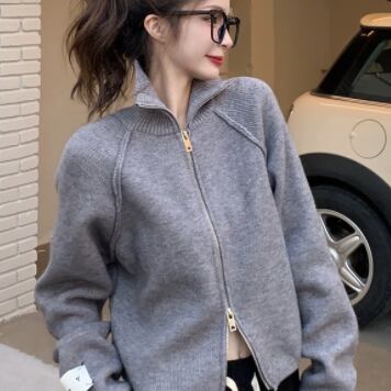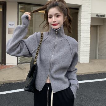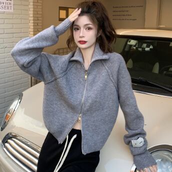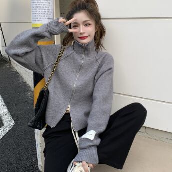 ショート丈のハイネックニットカーディガンです。