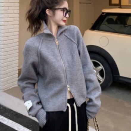 ご覧いただきありがとうございます。今回ご紹介する商品は、大人可愛いハイネックニットカーディガンです。ショート丈のデザインで、スキニーパンツやタイトスカートとの相性抜群。スリムタイトなシルエットながら、身体を締めつけすぎず、リラックスした着心地を実現しています。