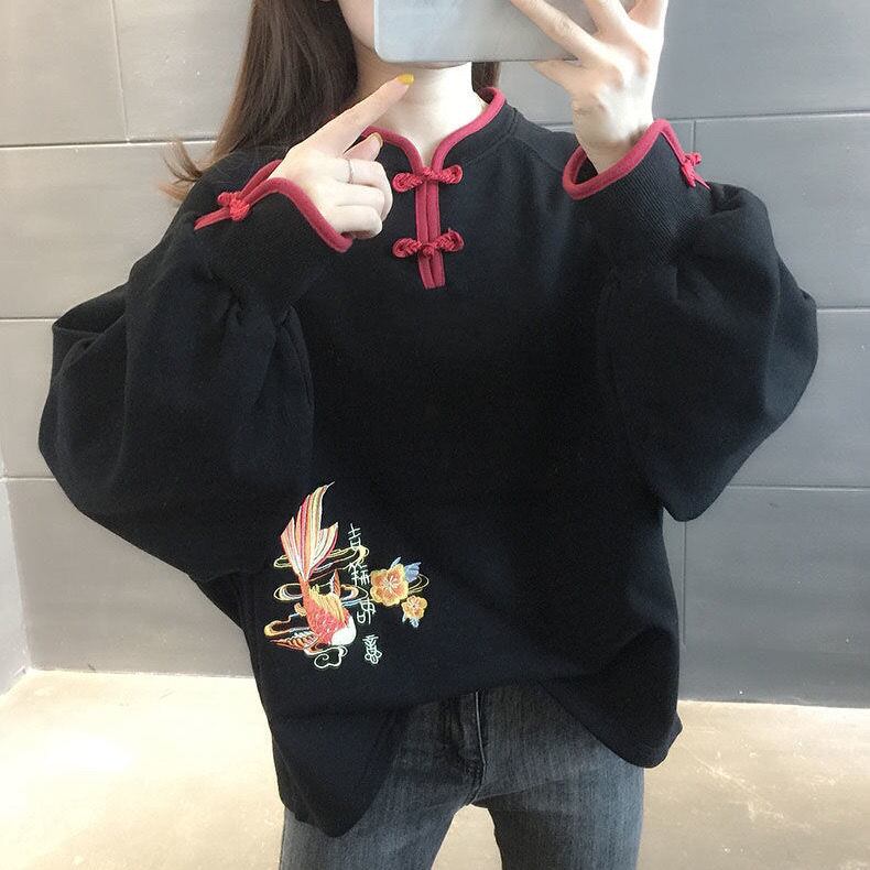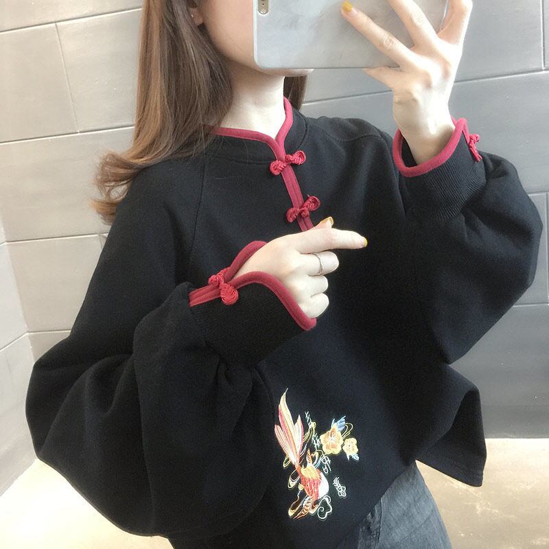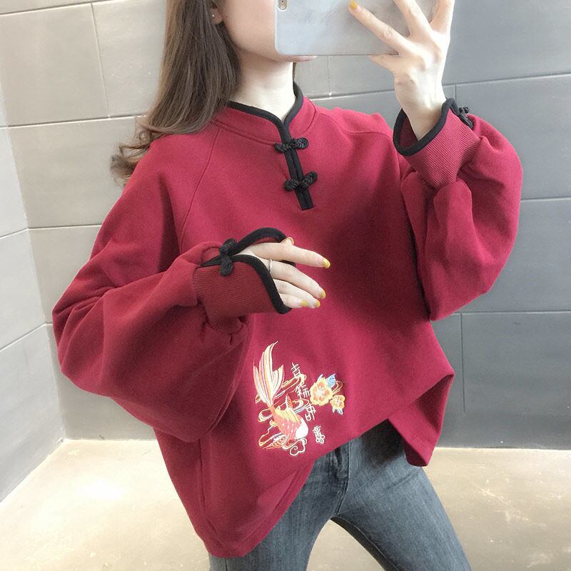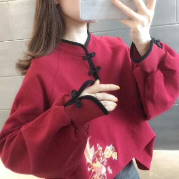 チャイナ風シャツは、シンプルで大人上品なデザインのトップスです。細身でスマートなシルエットが女性の体型を美しく見せてくれます。無地のブラックとレッドという2色からお選びいただけます。春秋冬、さまざまな季節に活躍する上品な一枚をぜひお楽しみください。