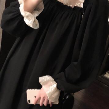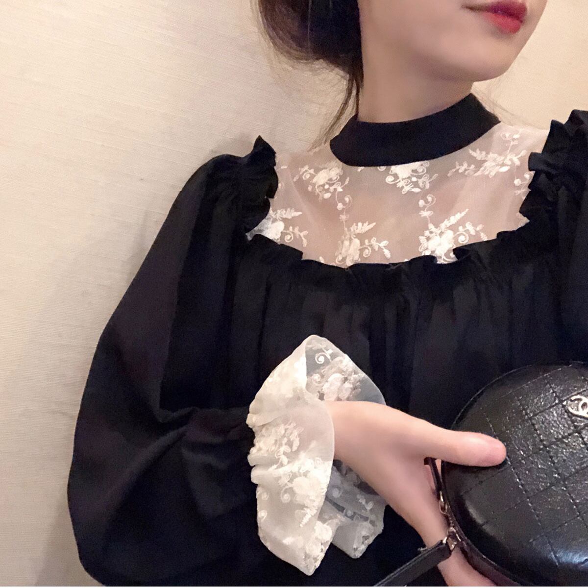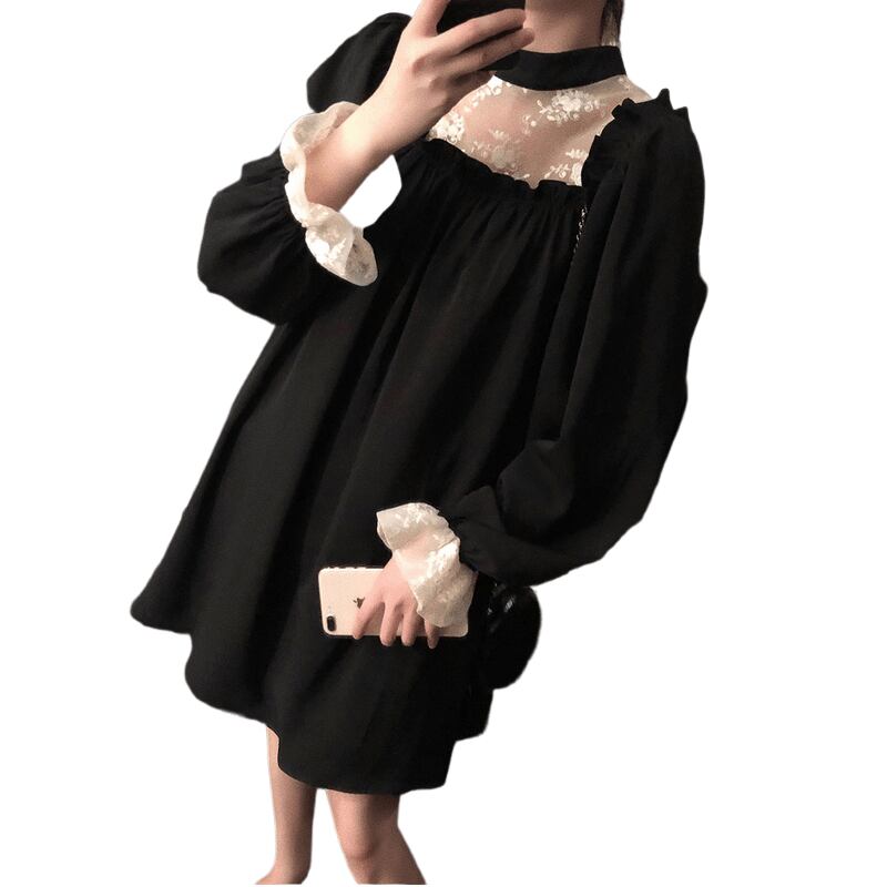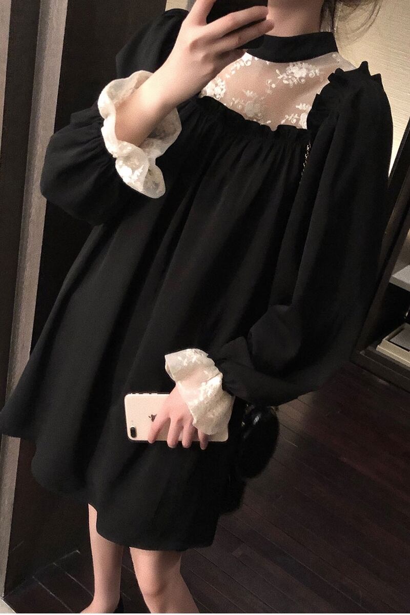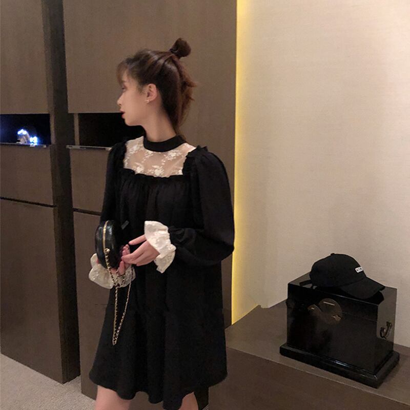 レイヤード風 フラワーレース シアー生地切替え 前後スクエアネック調 袖口フリル プチハイネック ワンピース ひざ丈 膝上 ミディアム丈 長袖 スタンドカラー セミフレア Aライン レース 刺繍 切り替えデザイン かわいい 大人可愛い きれいめ シンプル 大人 上品 おしゃれ こなれ感 ガーリー 個性的 エレガント 無地 花柄 春 秋 誕生日 レディース ママ マタニティ 女の子 デート お出かけ イベント レストラン 新作 M L XL 2XL 3XL 4XL 大きいサイズ ゆったり ブラック