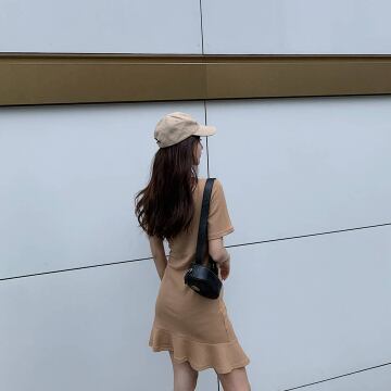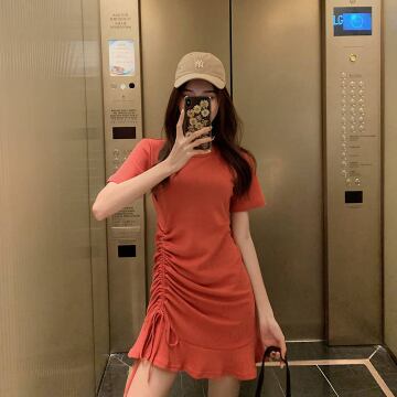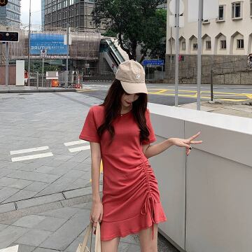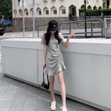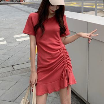 裾にギャザーが寄ってるワンピースです。