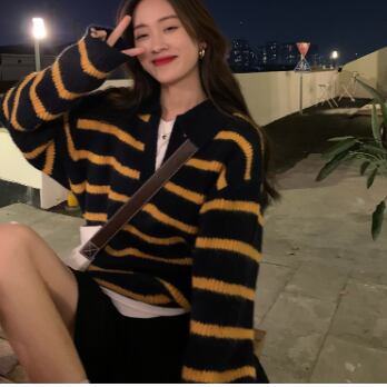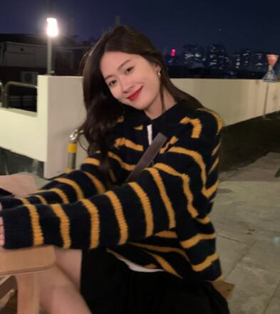 「大人可愛い」をコンセプトに、シンプルで洗練されたデザインのボーダーニットをご紹介します。袖口や裾はリブ編みでキュッと締まるので、女性らしいシルエットを演出します。さりげないVネックもポイントで、首周りをすっきり見せてくれます。