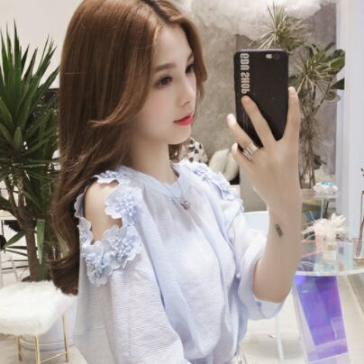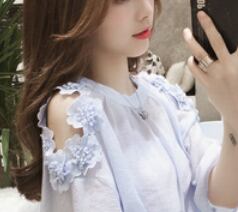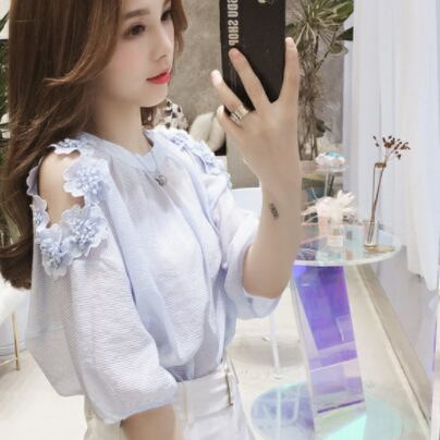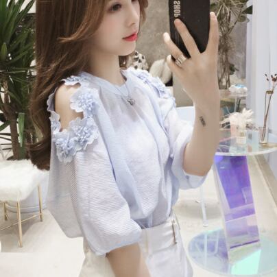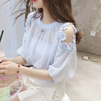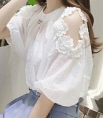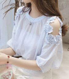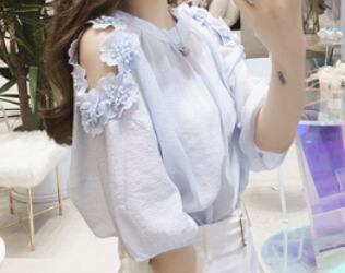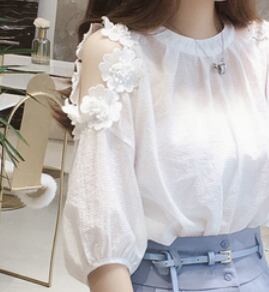お上品な5分袖ブラウスは、大人女子のためのキュートな一枚。ラウンドネックとシンプルなデザインが、上品さを演出します。無地の色合いは、清潔感のある白と爽やかな水色の2色展開。