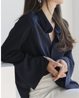 袖が広がった個性的デザインの長袖ブラウスです。