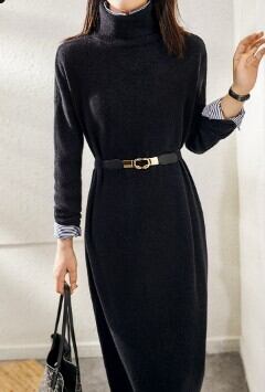 大人女子にぴったりな薄手ハイネックニットロングワンピース。流行にとらわれず、シンプルでオシャレなデザインが魅力です。ミモレ丈でスタイルアップも叶え、スリムフィットで体型カバーもばっちり。長袖で暖かさも保証され、秋冬のアウターのインナーにも最適です。
