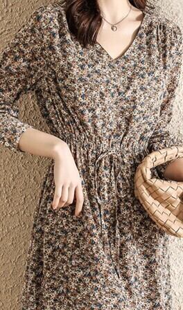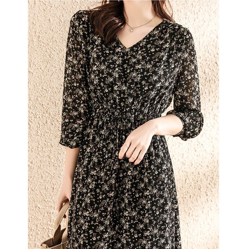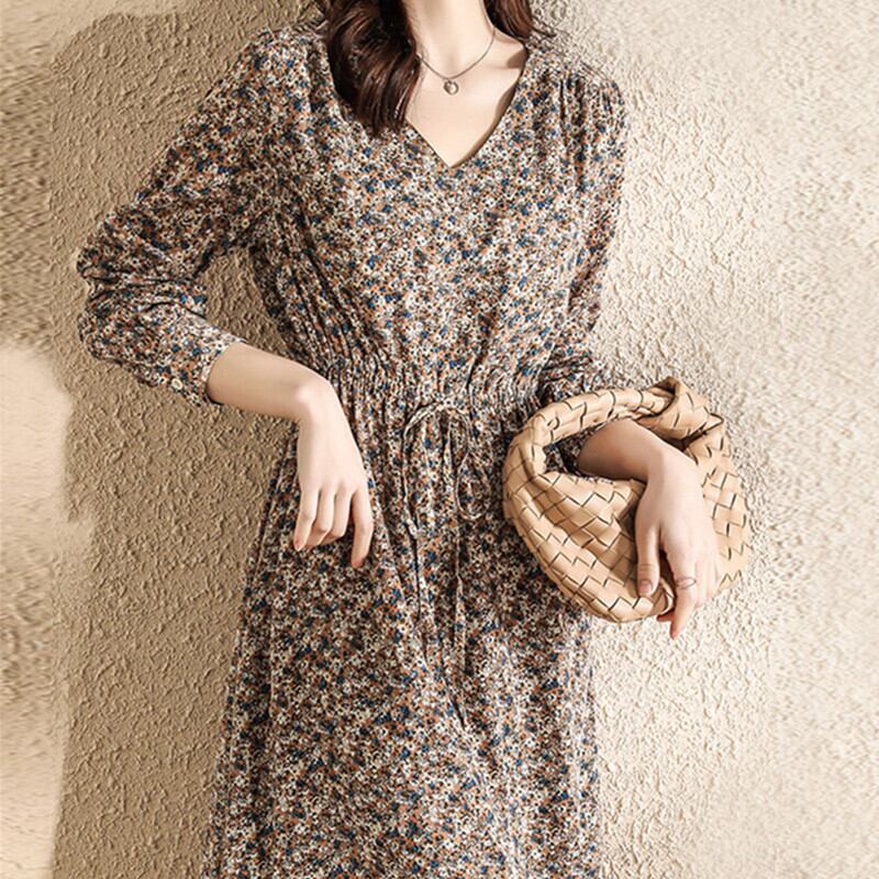 シフォンワンピース トップス フェミニン ブラック 黒 アプリコット ロング丈 袖あり 長袖 Vネック フレア ウエスト紐 シフォン 大人女子 大人 上品 おしゃれ きれいめ シンプル レトロ レトロ風 こなれ感 ラフ キュート かわいい 女子 個性的 デザイン 主役級 存在感 柄 花柄 フラワー 秋 オータム 10代 20代 30代 レディース 女性用 学生 通学 デート お出かけ 女子会 着回し 普段使い 3XL 4XL 大きいサイズ プラスサイズ M L XL 2XL
