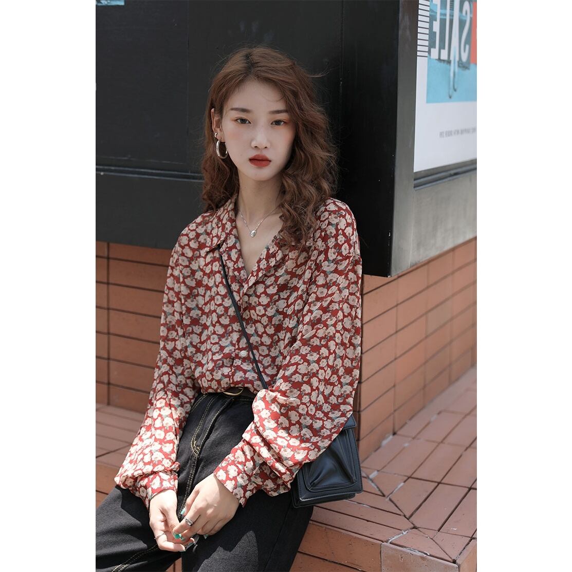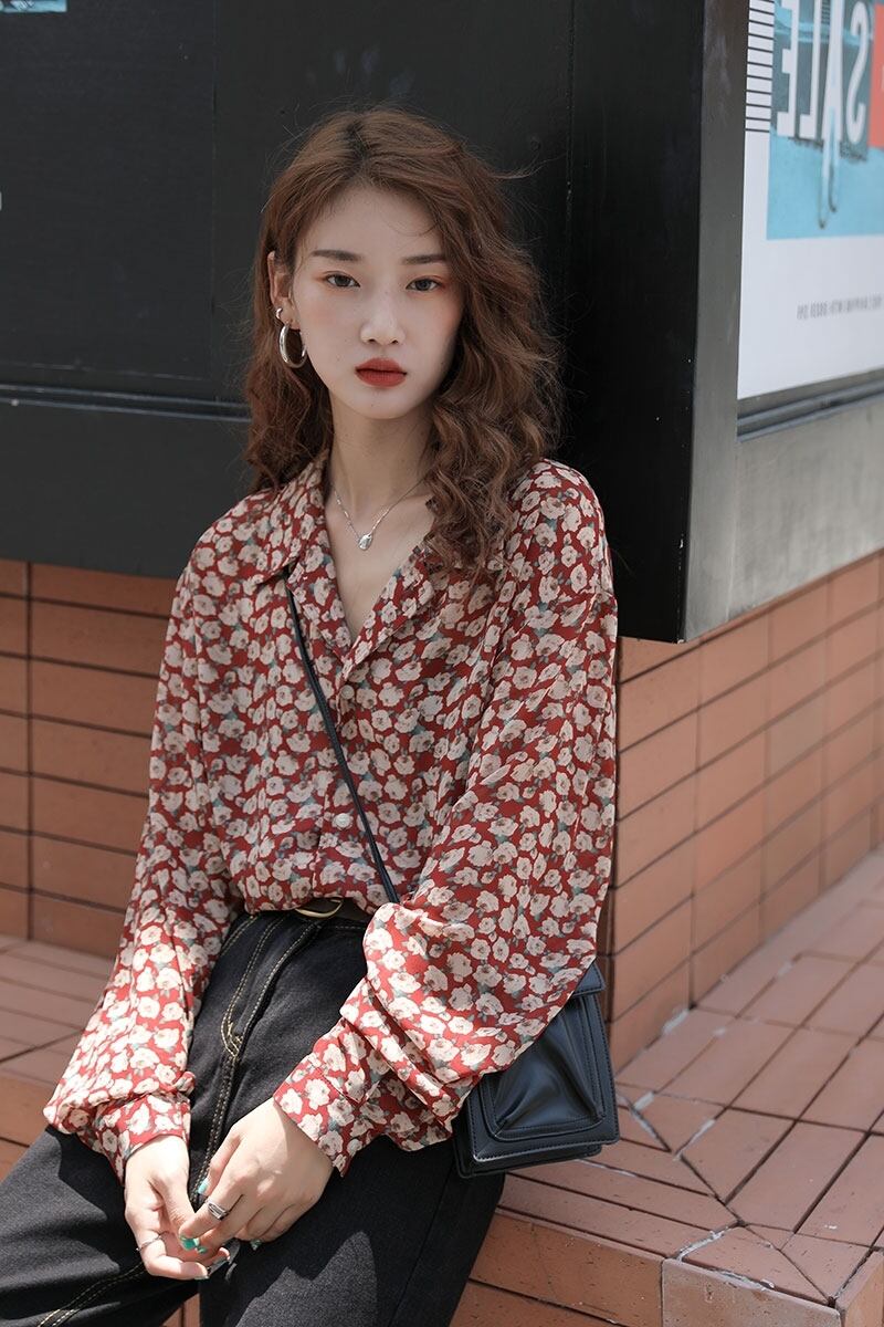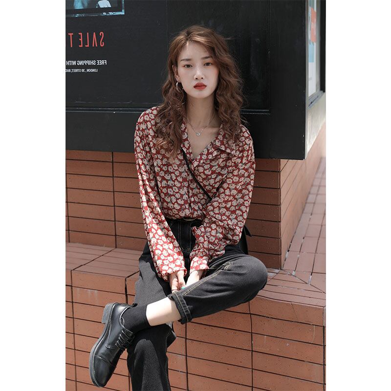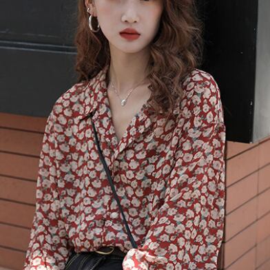 レトロなイメージのフローラル模様が個性的なブラウスです。