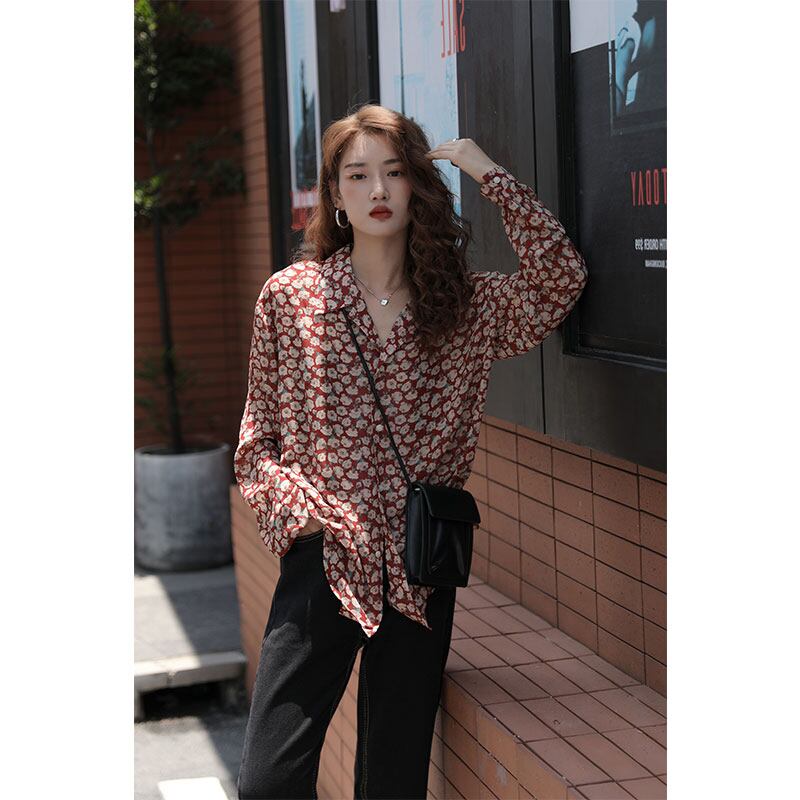 フローラルシャツブラウストップス ブラウス ミディアム丈 袖あり 長袖 襟付き オープンカラー ストレート 前開き ボタン 大人可愛い きれいめ 大人 上品 おしゃれ お洒落 かっこいい レトロ エスニック エキゾチック 大人女子 こなれ感 ラフ マニッシュ 個性的 クール モード系 セクシー モダン 主役級 存在感 とろみ感 花柄 春 秋 10代 20代 30代 レディース 女性用 OL 通勤 学生 通学 デート お出かけ 休日 リゾート 旅行 着回し 普段使い ファッション コーデ スタイル モテ