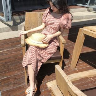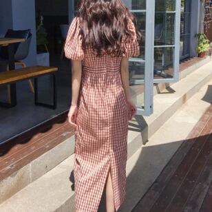 チェック柄のストレートワンピースです。
