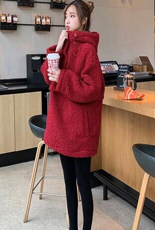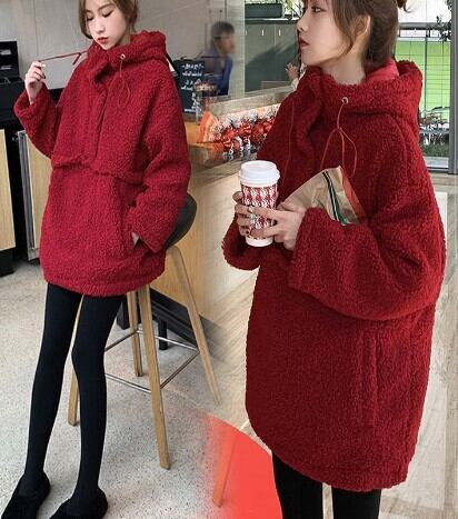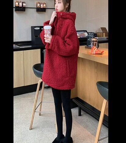 フリースコート アウター フーディー カジュアル レッド 赤 ミディアム丈 袖あり 長袖 フード ストレート ポケット 大人女子 大人 上品 おしゃれ デイリーウェア レトロ レトロ風 こなれ感 ラフ ルーズ シルエット キュート かわいい 女子 個性的 デザイン 主役級 存在感 無地 冬 ウインター 10代 20代 30代 レディース 女性用 ママ マタニティ 通勤 学生 通学 着回し 普段使い 暖かい 防寒 大きいサイズ プラスサイズ M L XL 2XL
