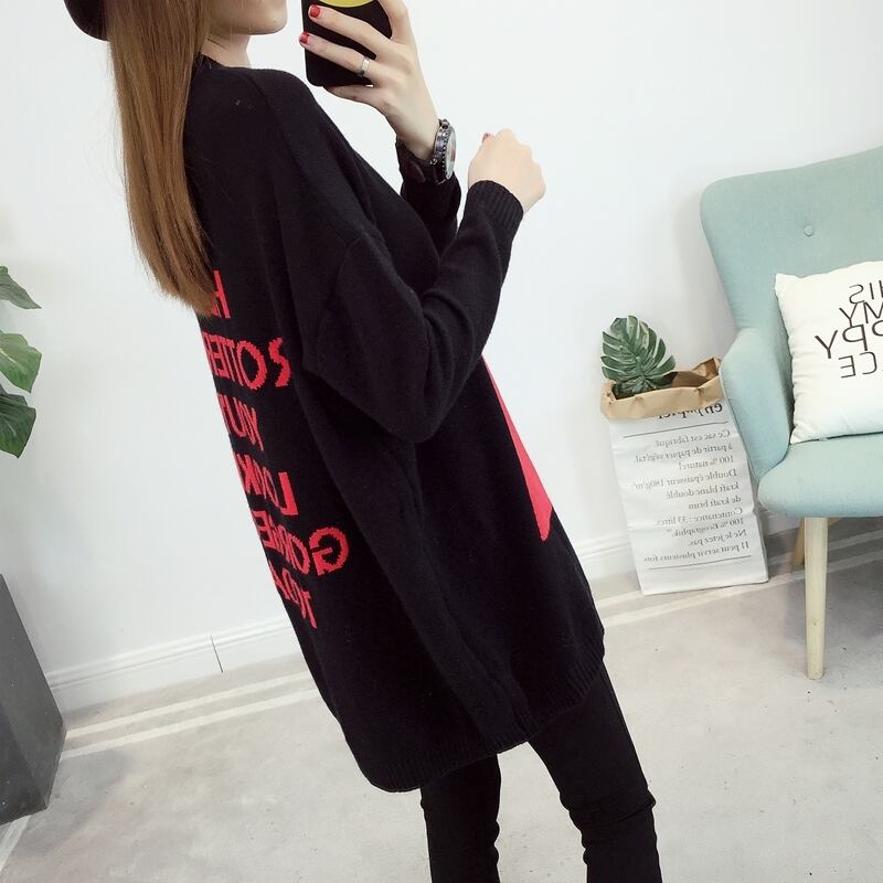 ルーズセーター トップス セーター プルオーバー カジュアル ブラック 黒 グリーン 緑 レッド 赤 イエロー 黄色 ミディアム丈 袖あり 長袖 ラウンドネック ワイド 大人女子 大人 上品 おしゃれ デイリーウェア レトロ レトロ風 こなれ感 ラフ ルーズ シルエット 個性的 デザイン 主役級 存在感 柄 アルファベット 文字 秋 オータム 冬 ウインター 10代 20代 30代 レディース 女性用 ママ マタニティ 休日 おうち 着回し 普段使い らくちん ワンサイズ