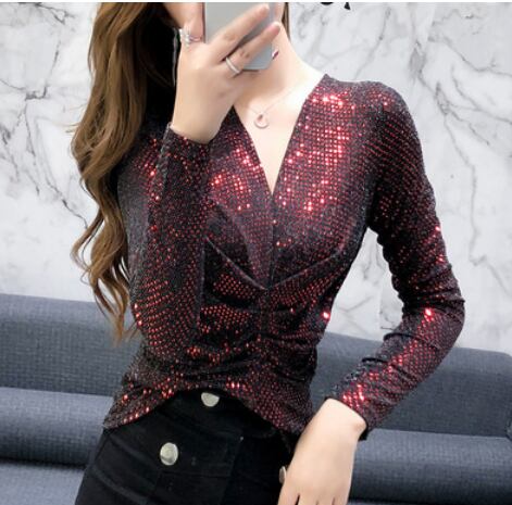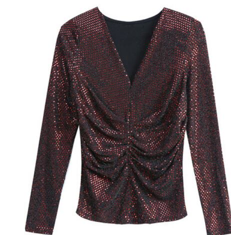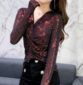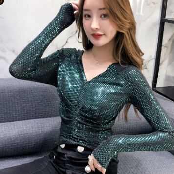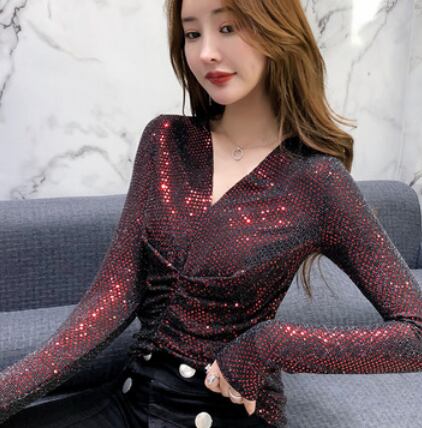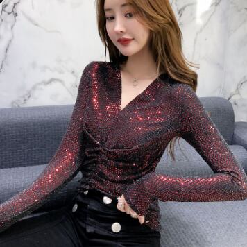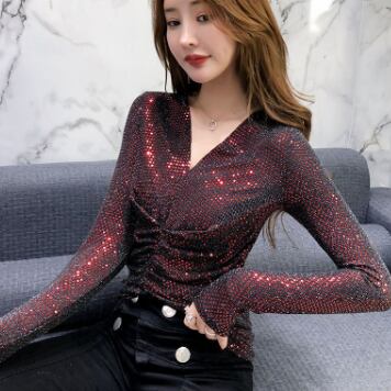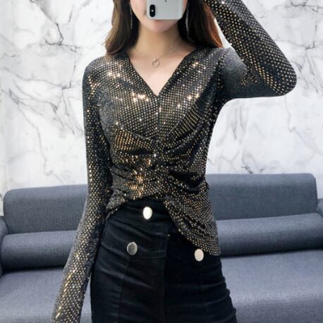 スパンコールVネックトップス トップス カットソー 長袖 Vネック スリム タイト 細身 光沢 スパンコール 大人可愛い おしゃれ かっこいい 大人女子 クール モード系 セクシー 主役級 存在感 無地 春 秋 謝恩会 二次会 クリスマス バレンタイン 10代 20代 30代 40代 レディース ママ 女の子 お出かけ パーティー イベント ホテル レストラン 着回し お揃い 双子 ファッション コーデ スタイル モテ インスタ映え 個性的 M L XL 2XL 3XL サイズ コンパクト サイズ豊富