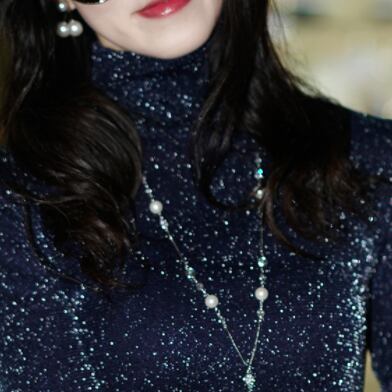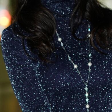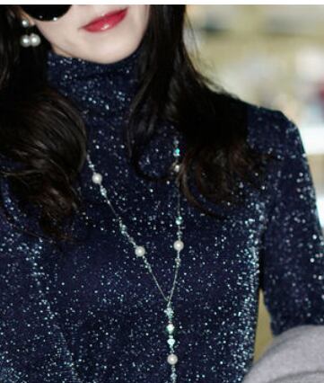 ラメ入りで光沢感があり、大人可愛いハイネック長袖トップス。幅広いシーンで活躍し、主役級の存在感を放つ。