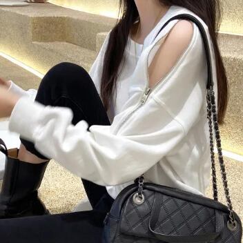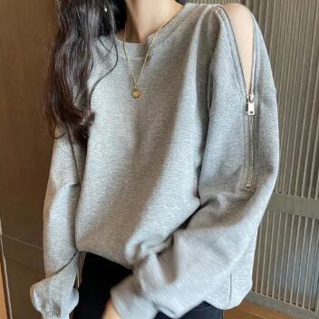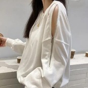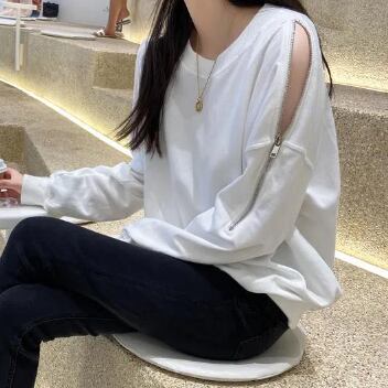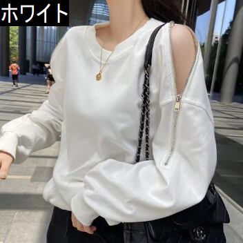 肩ジッパーデザインスウェット トップス トレーナー 長袖 ラウンドネック かわいい 大人可愛い きれいめ シンプル 大人 上品 おしゃれ 大人女子 ラフ ボーイッシュ 個性的 無地 春 秋 冬 10代 20代 30代 40代 50代 レディース ママ 女の子 学生 通学 デート お出かけ 公園デビュー お泊まり 休日 アウトドア お散歩 リラックス 着回し 普段使い お揃い ファッション コーデ スタイル 楽ちん 合わせやすい M L XL 2XL 3XL 大きいサイズ サイズ豊富 白 ホワイト 黒